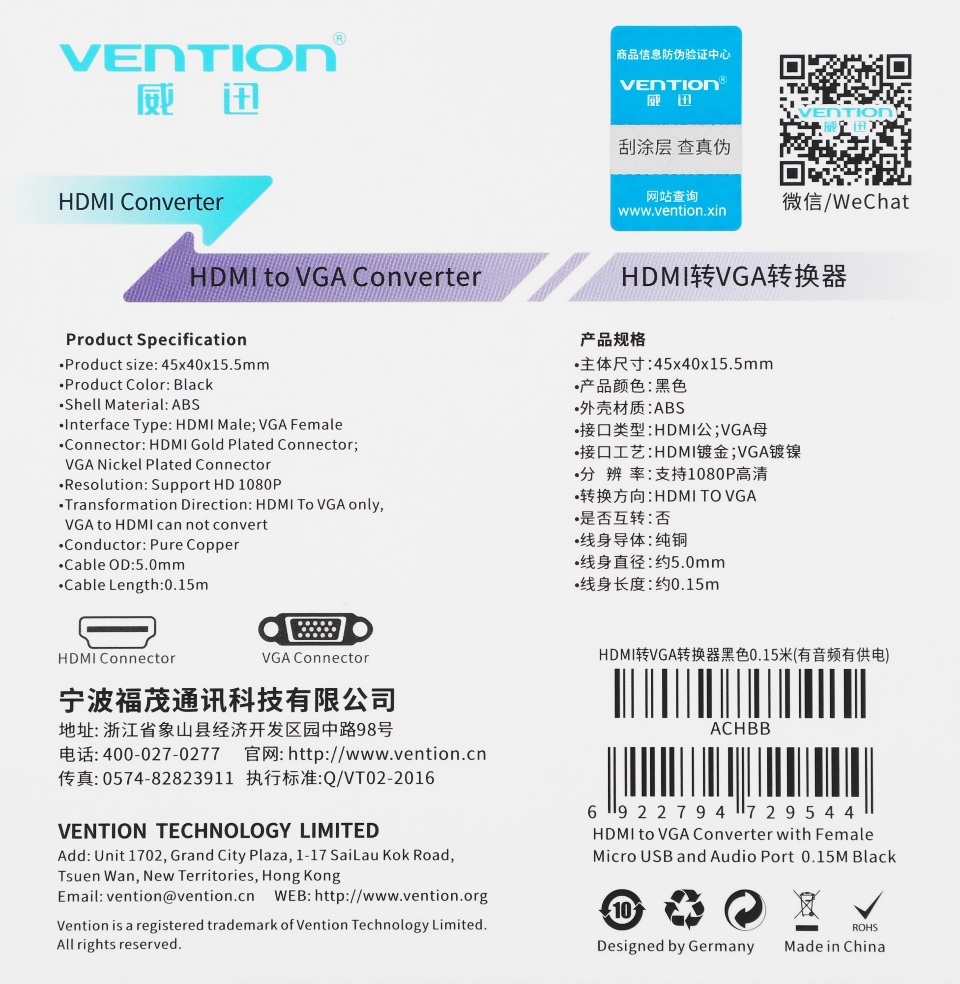 Адаптер аудио-видео Vention ACHBB