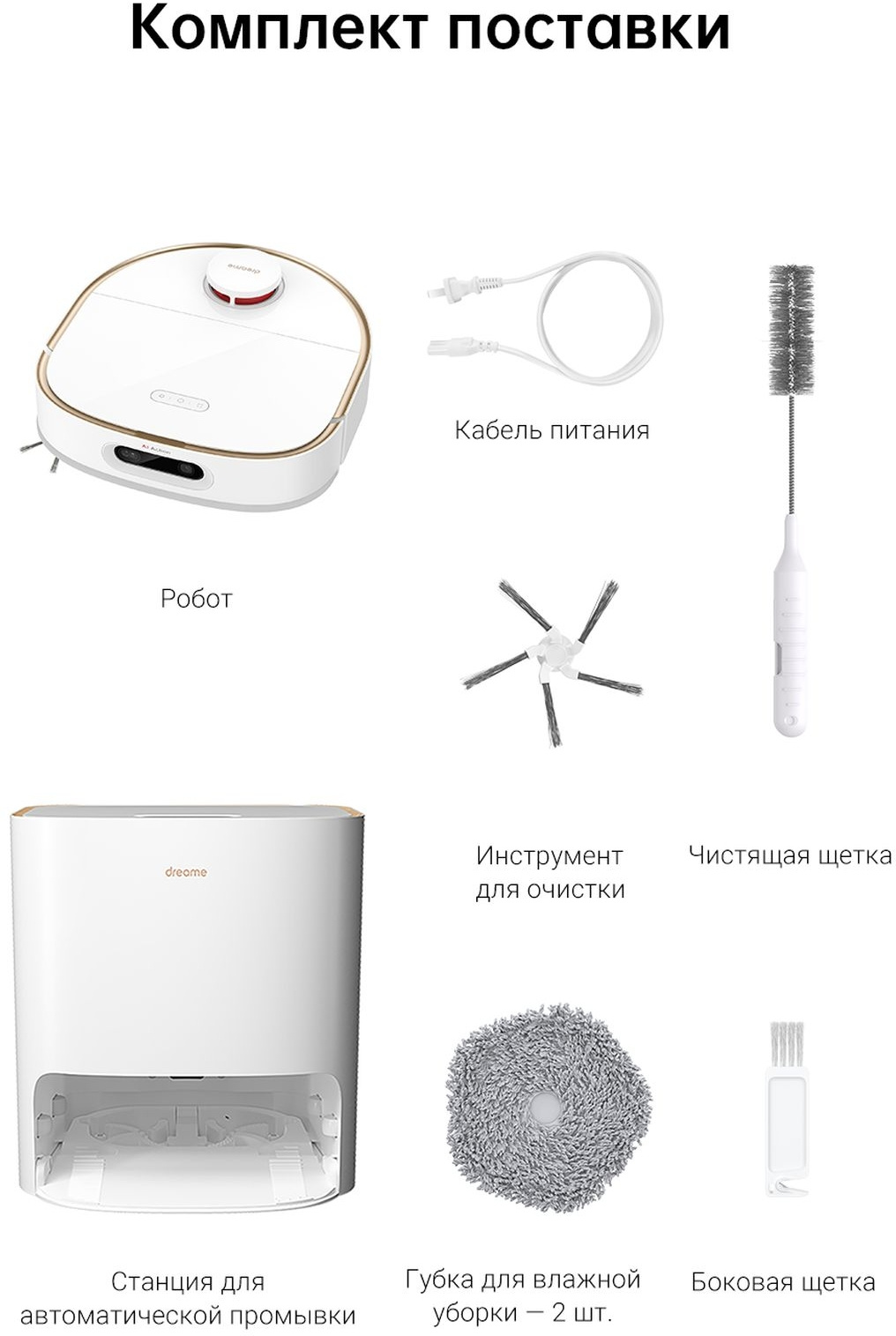 База для автоочистки, робот-пылесос, кабель питания, чистящий инструмент, щетка для чистки, руководство пользователя