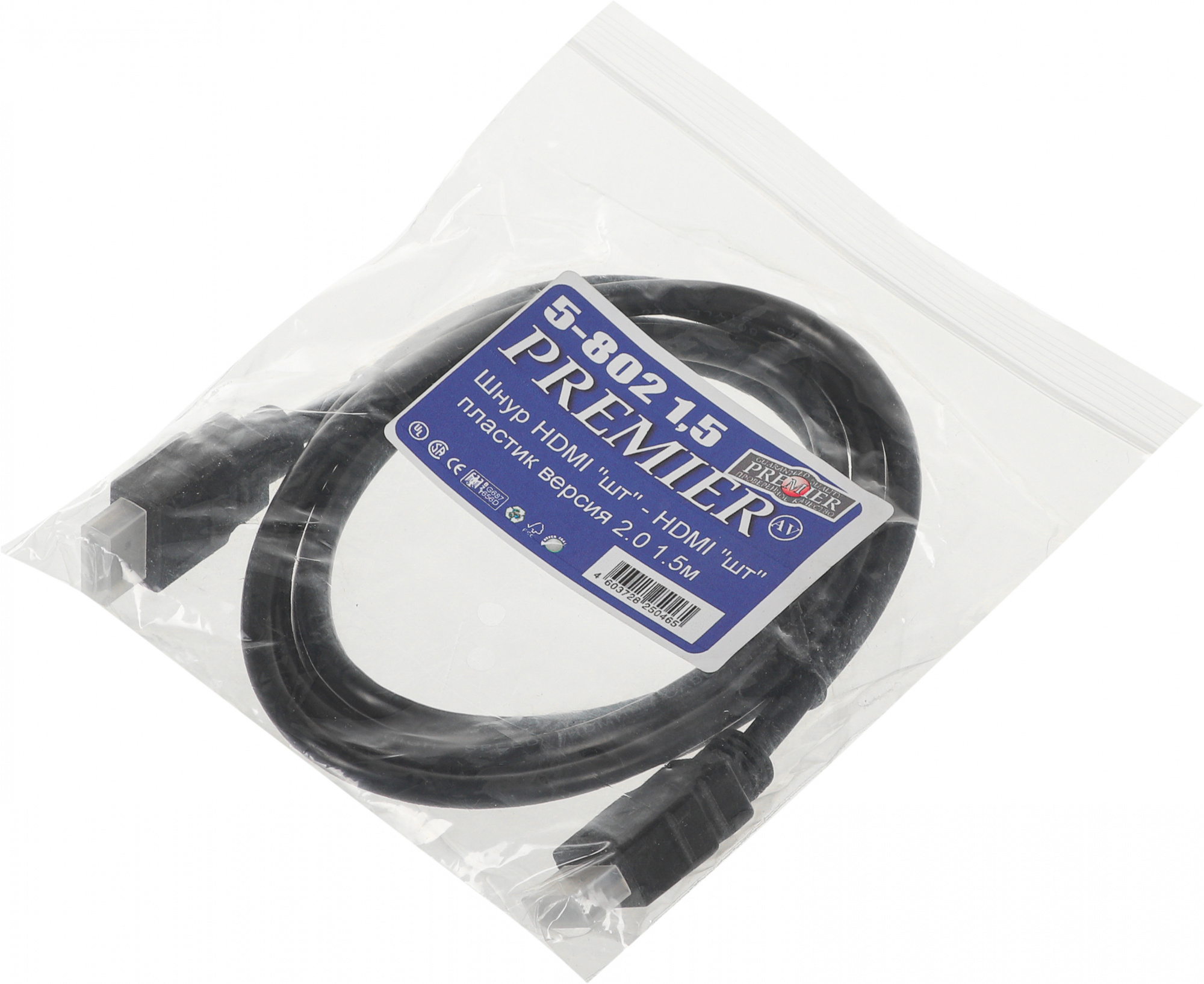 HDMI (m)/HDMI (m) 1.5м. черный (5-802 1.5)