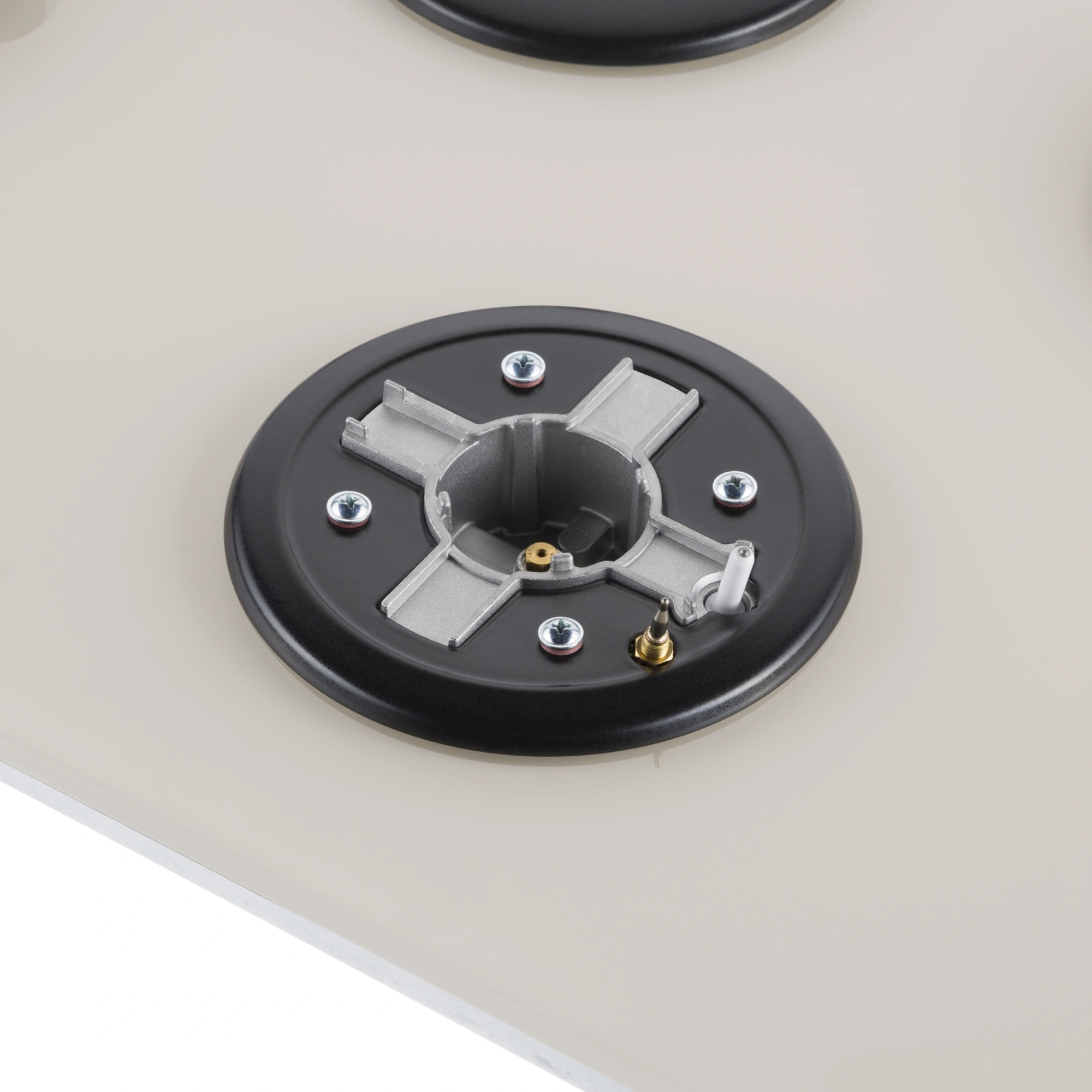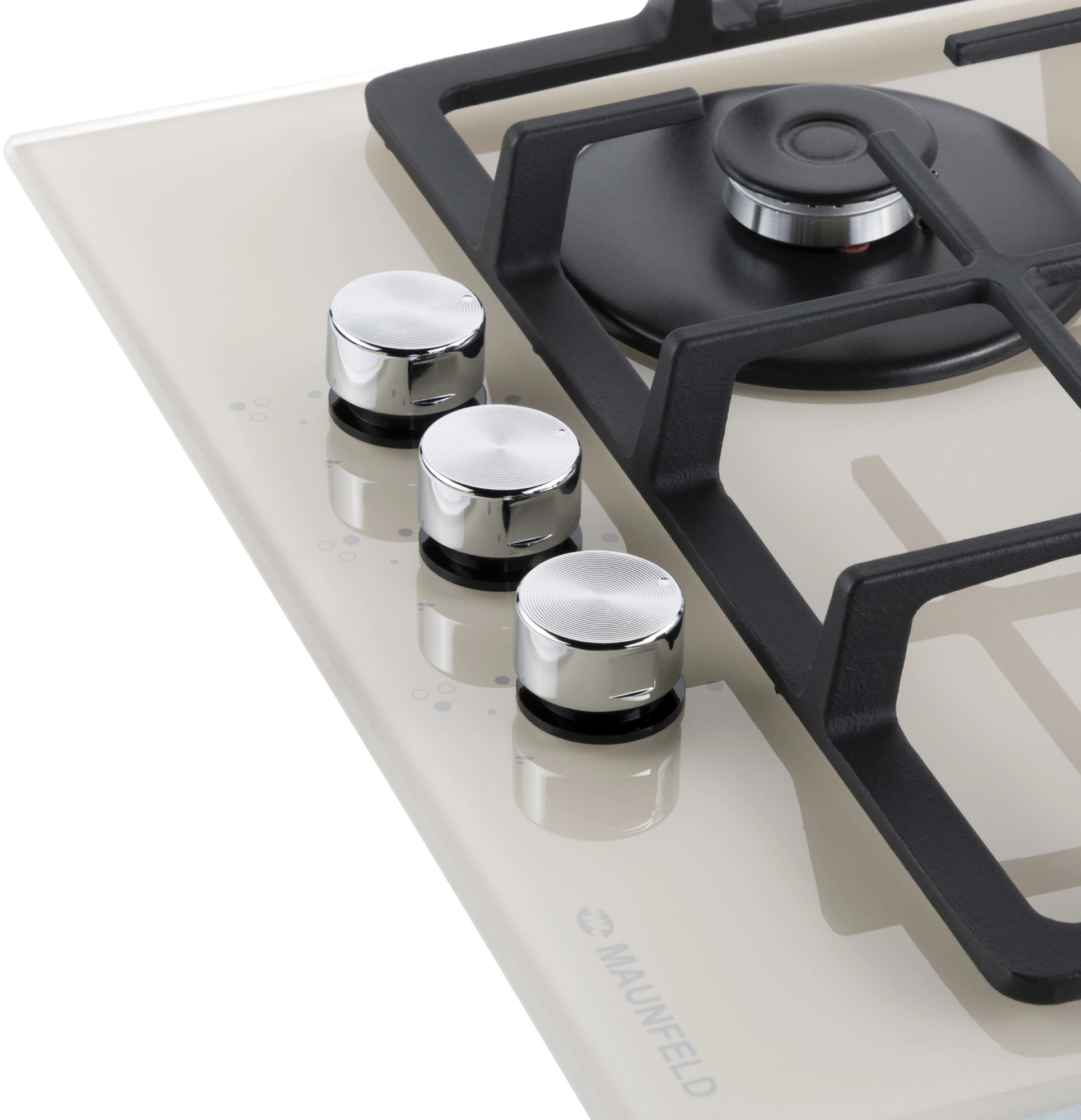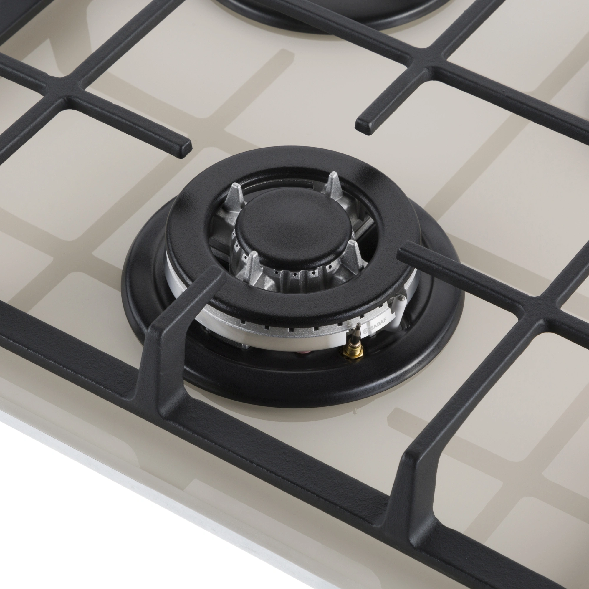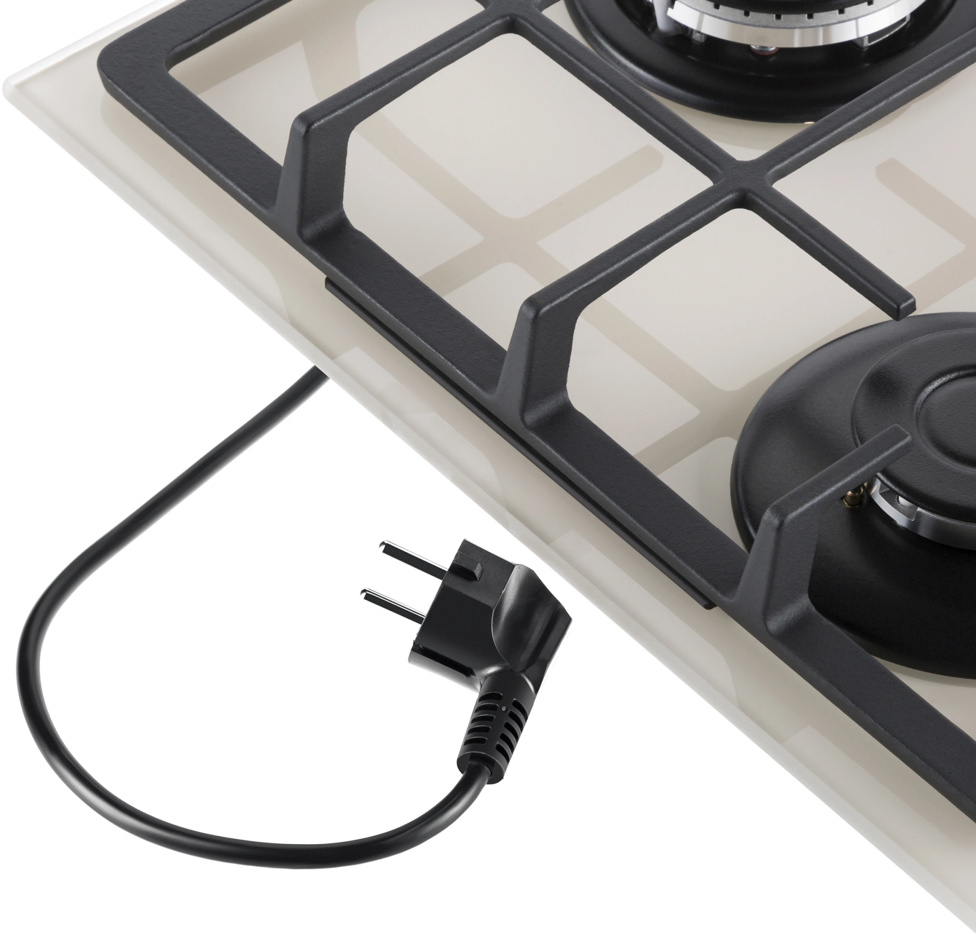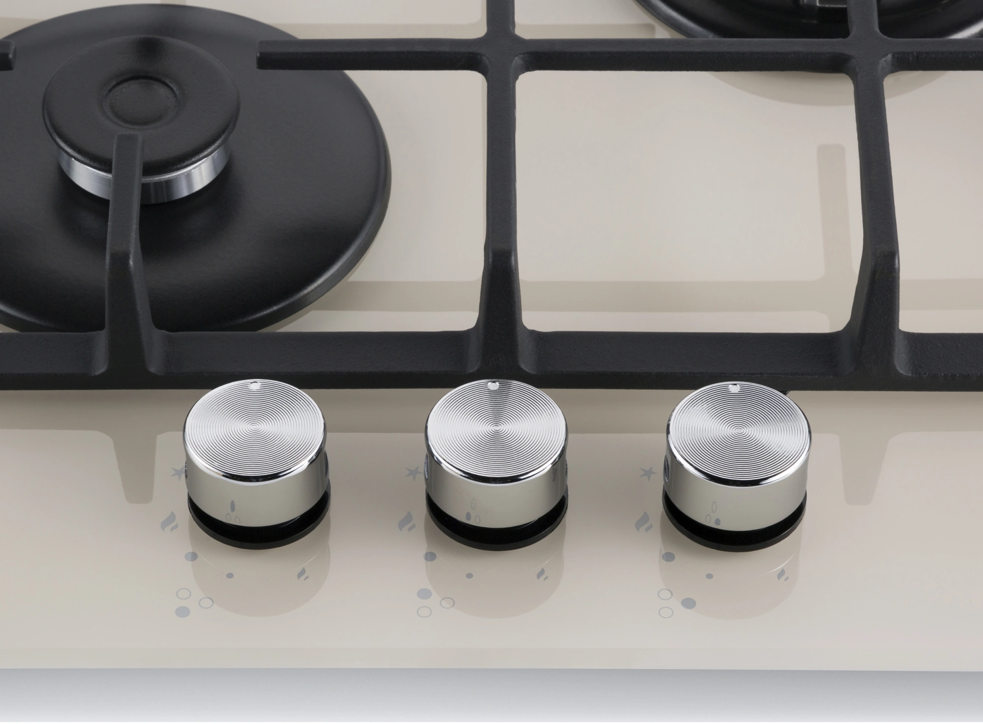 Регулирование подачи газа и электроподжиг конфорок происходит с помощью поворотных цельнометаллических ручек.