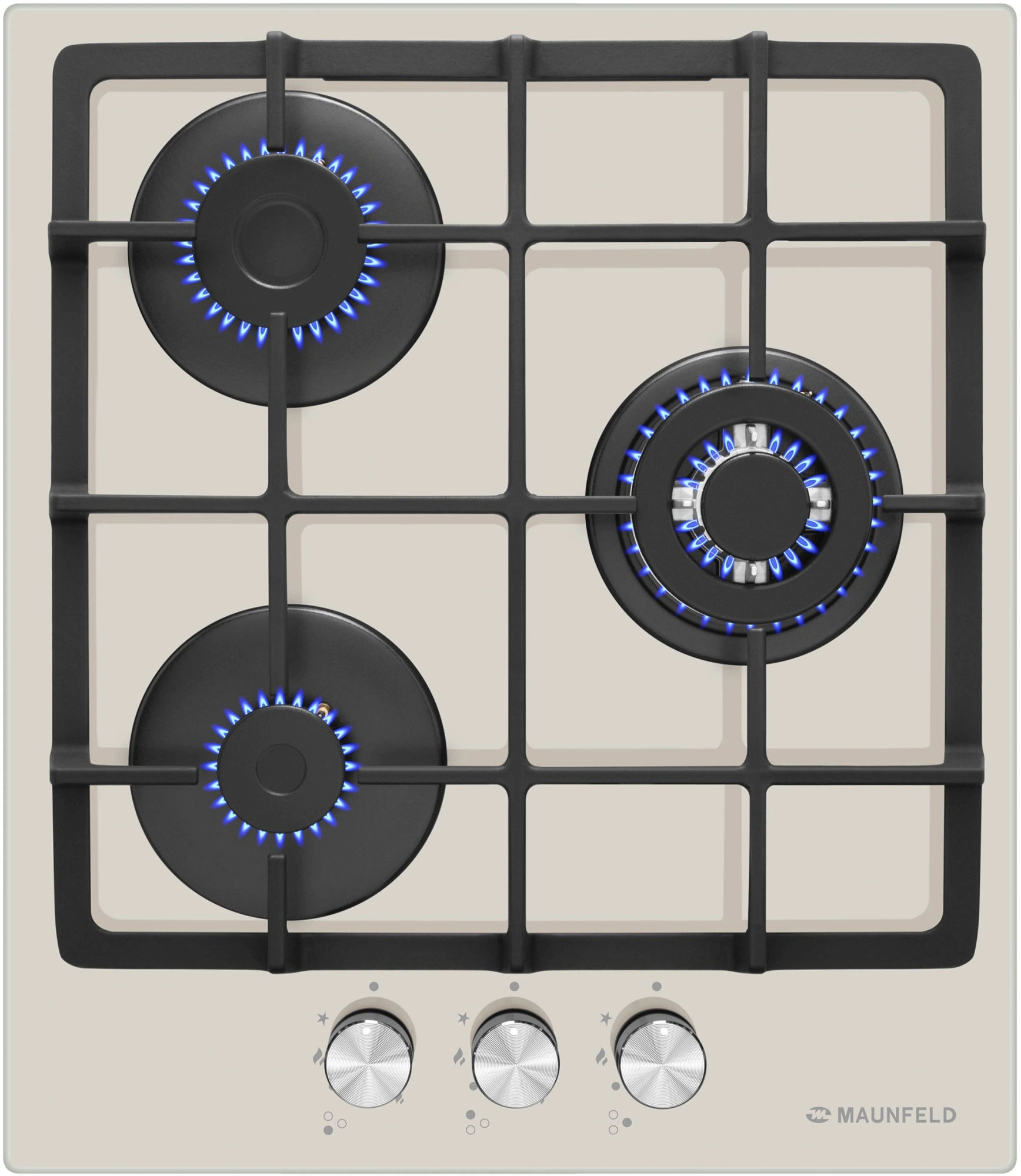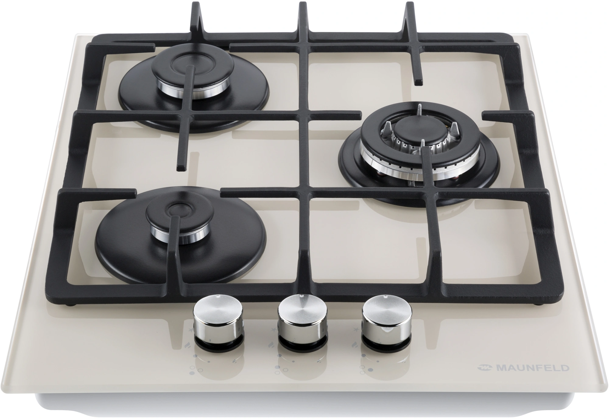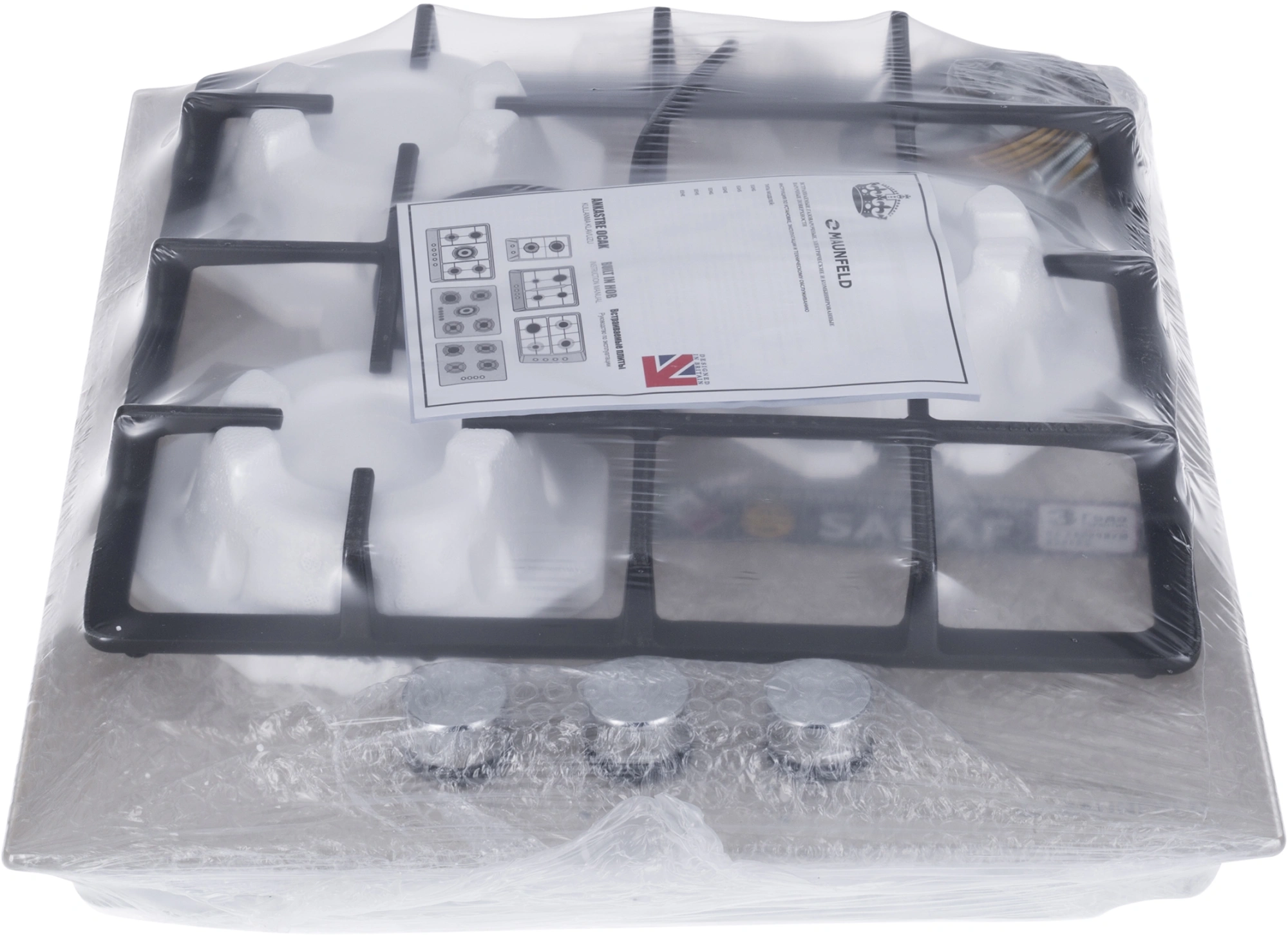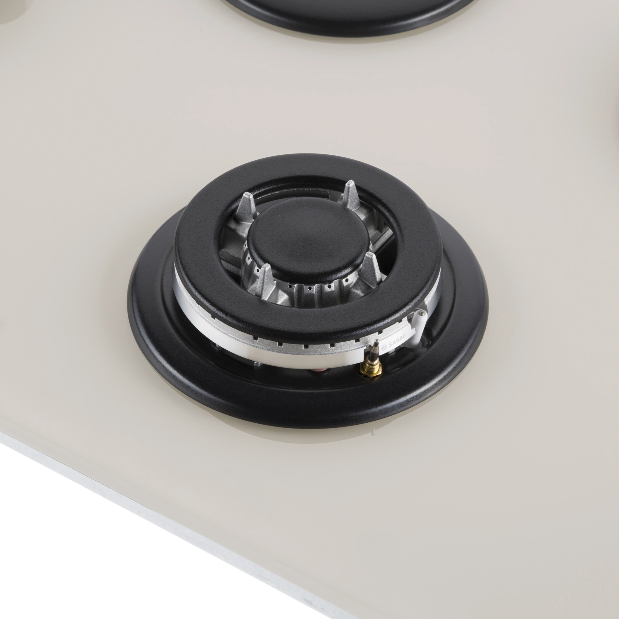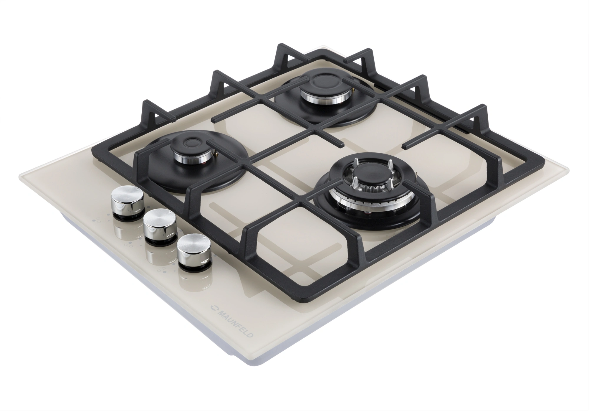 Регулирование подачи газа и электроподжиг конфорок происходит с помощью поворотных цельнометаллических ручек.