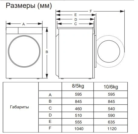 класс: A загр.фронтальная макс.:10кг (с сушкой) бе...