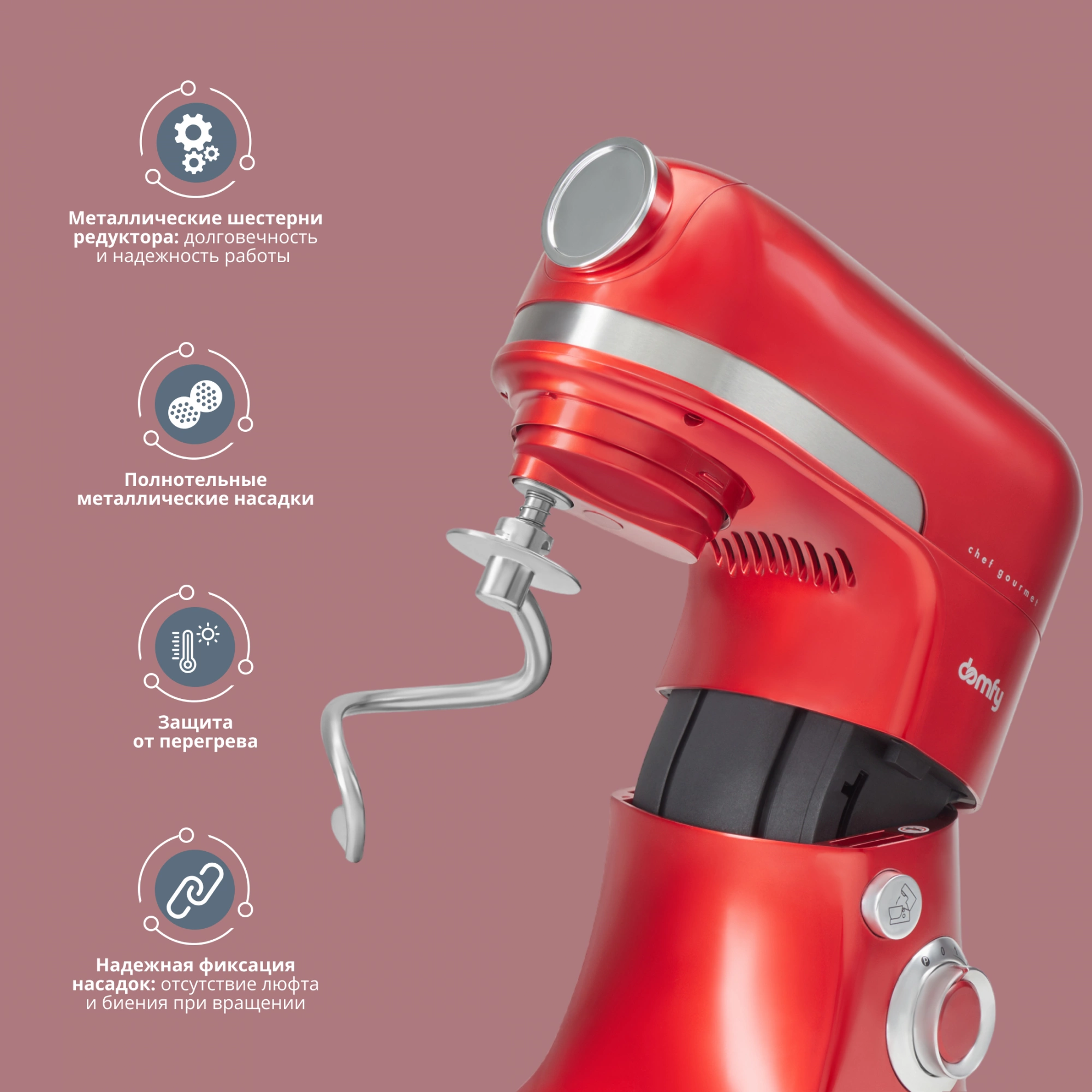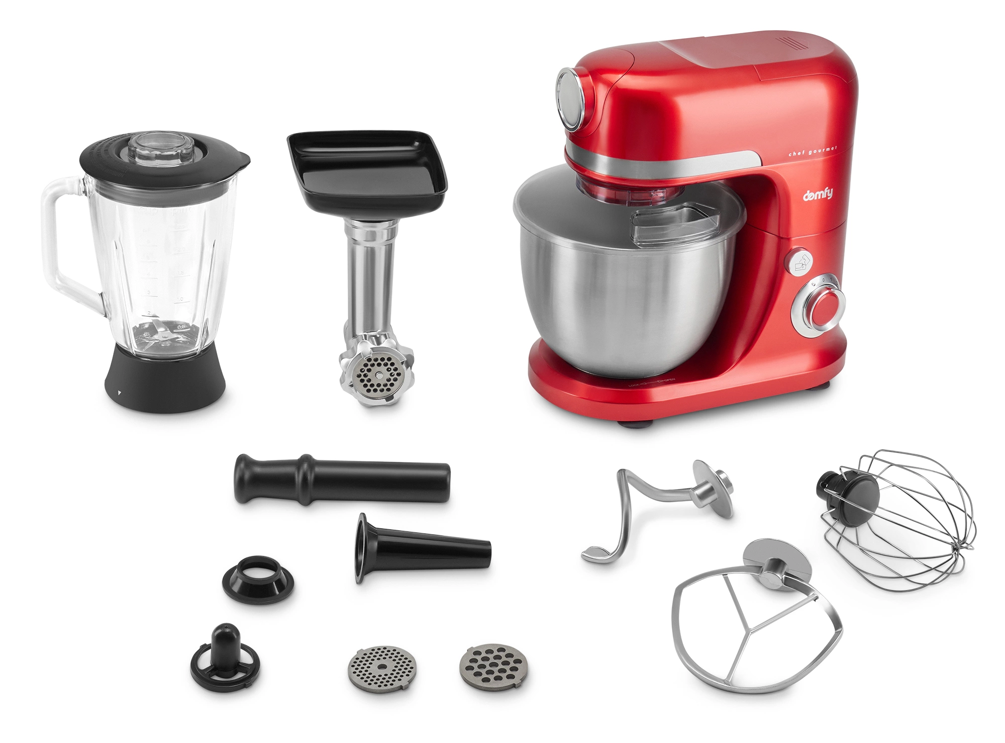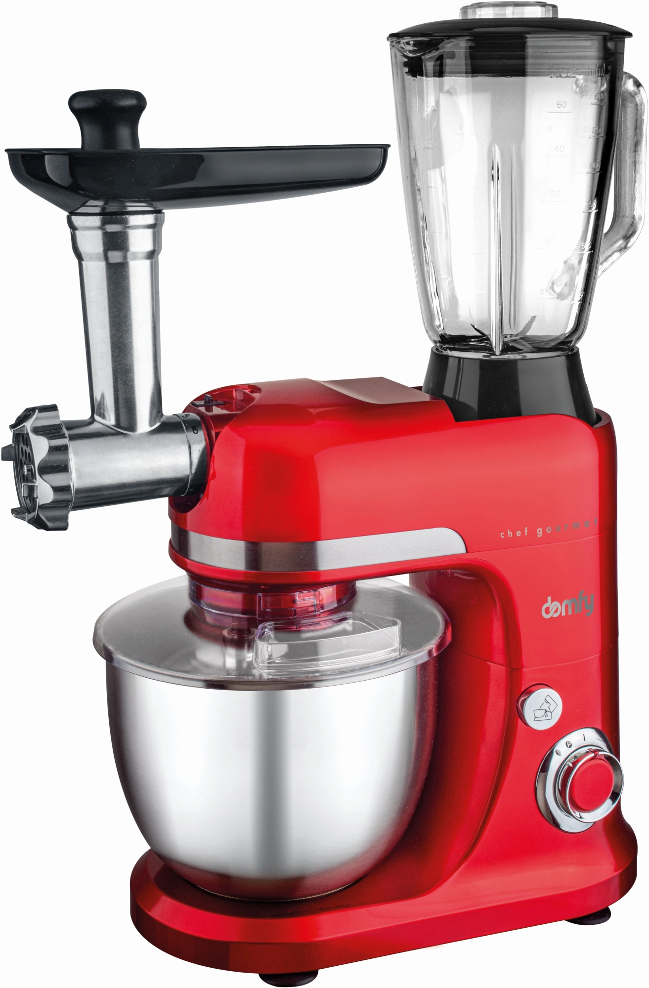 Кухонная машина 6 в 1 DOMFY DSС-KM502 упростит процесс приготовления любимых блюд и откроет доступ к ранее недоступным рецептам. Сочетание функций планетарного миксера, блендера и мясорубки, наличие в комплекте 3 миксерных насадок, 3 решеток для фарша, насадок для колбас и кебе, а также 6 скоростных режимов существенно расширяют возможности применения прибора.