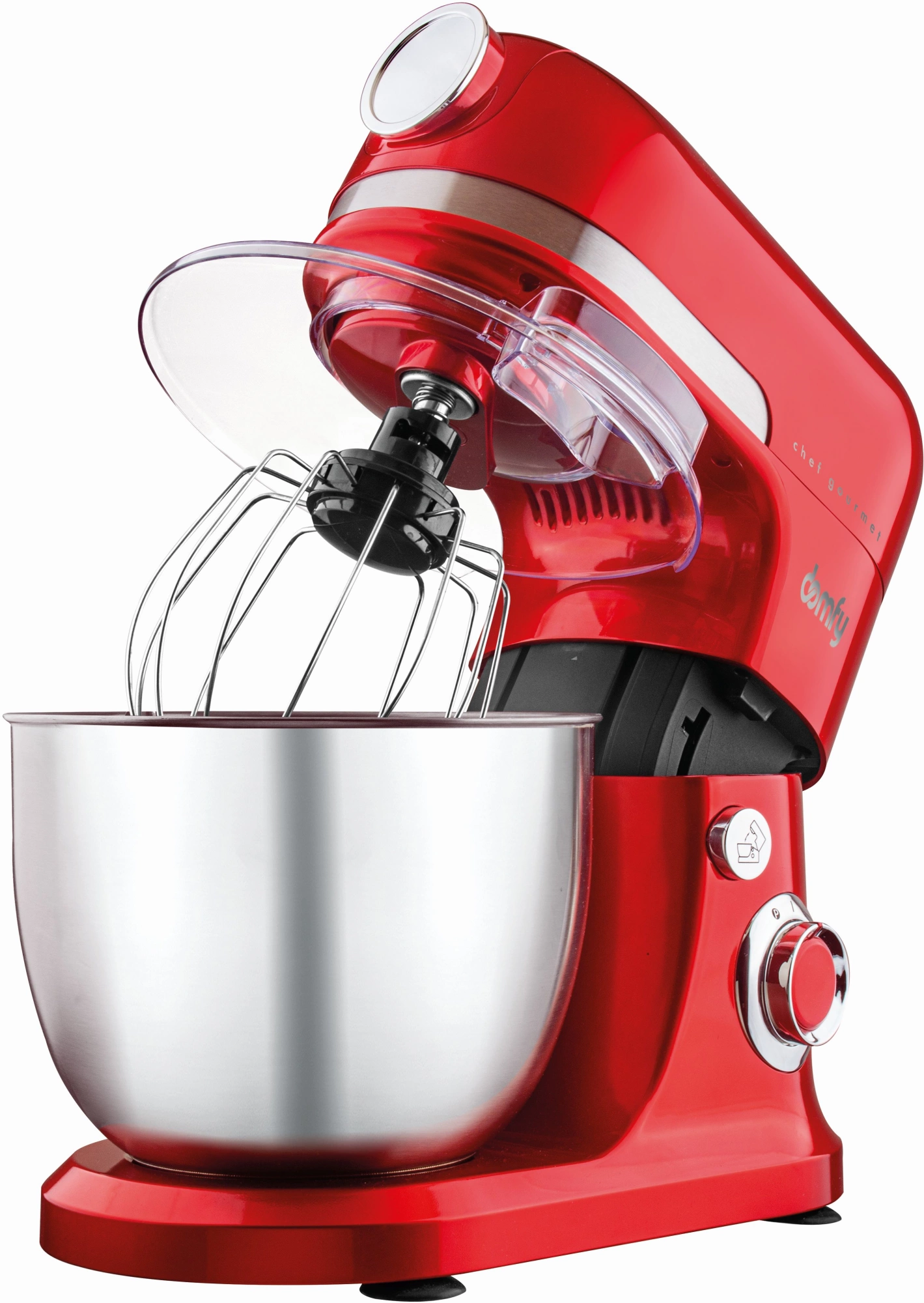 Мощность мотора 2000 Вт. Мощный электродвигатель обеспечивает сохранение высокой скорости вращения даже при значительных нагрузках, например, при замешивании густого теста или приготовлении фарша из жесткого мяса.