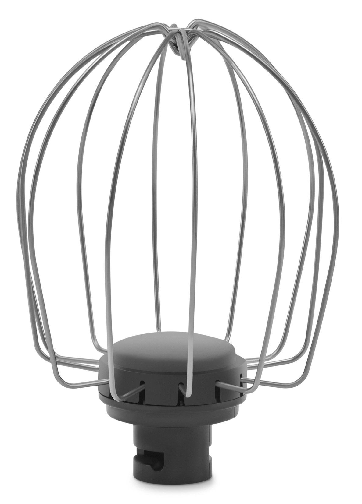 3 цельнолитые насадки для миксера из нержавеющей стали. Венчик идеально подойдет для взбивания яиц и сливок, лопатка предназначена для замешивания теста для бисквитов и печенья, а крюк – для замеса густого дрожжевого теста для хлеба и пиццы.