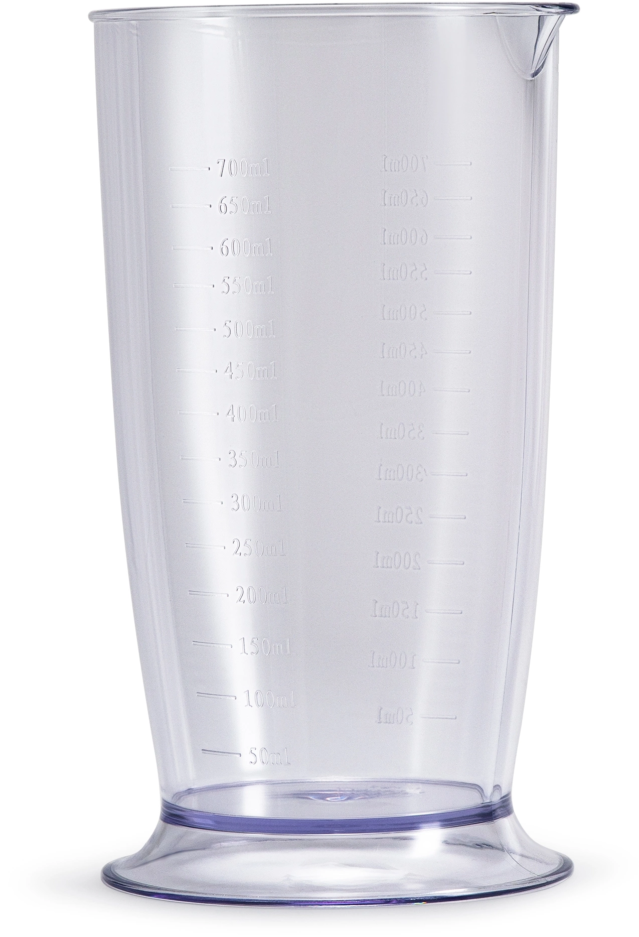 Мерный стакан 700 мл. Емкость можно использовать для отмеривания необходимого количества ингредиентов, так и в качестве посуды для их смешивания при помощи блендера и венчика.