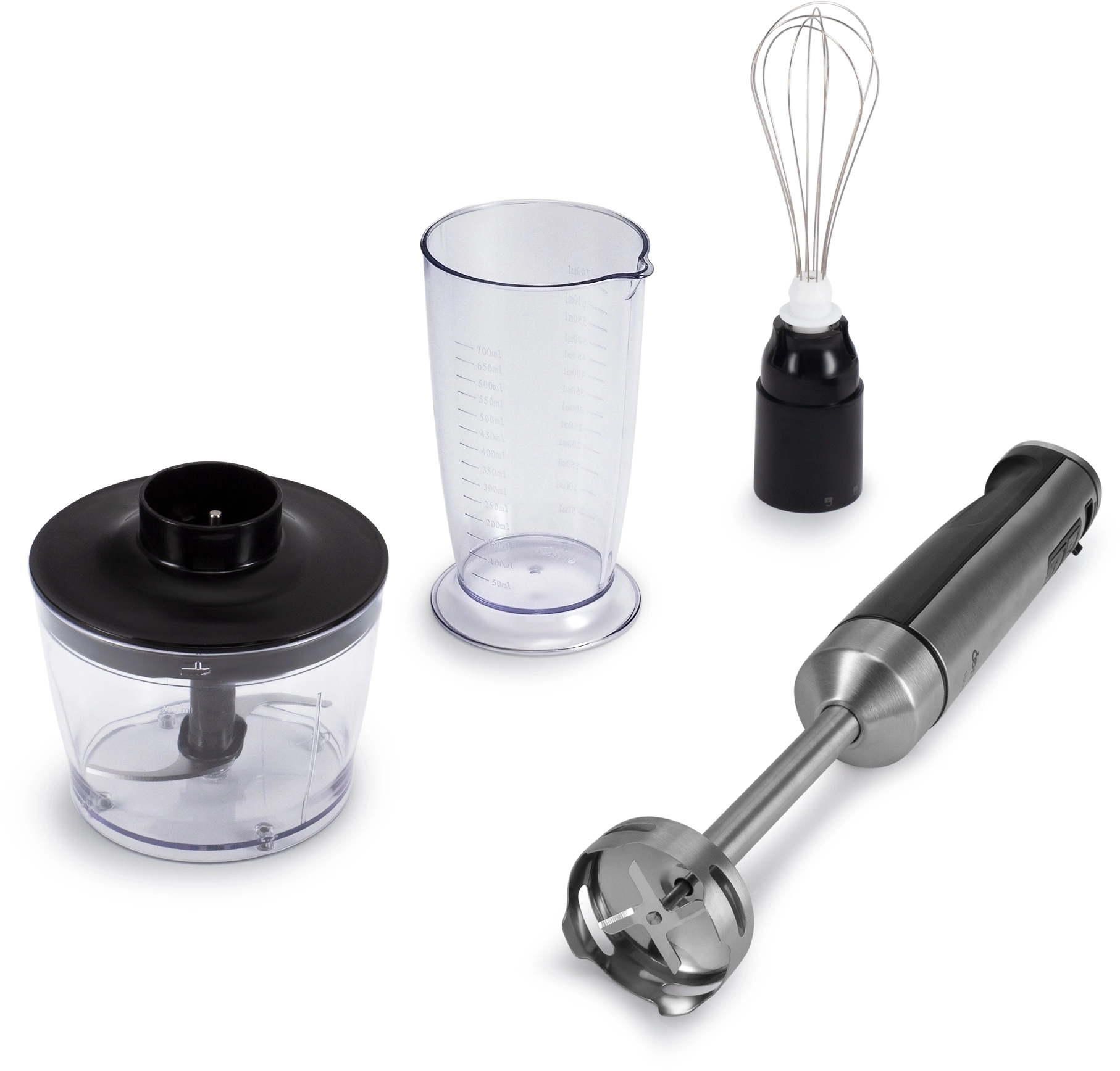 DOMFY DSM-HB401 STAINLESS STEEL – это не просто погружной блендер, а компактный кухонный комбайн 3 в 1. Наличие в комплекте насадки-измельчителя, венчика и мерного стакана, высокая мощность и плавное регулирование скорости раскрывают перед владельцем прибора практически неограниченные возможности. Основная насадка и корпус блендера выполнены из нержавеющей стали, сочетающей в себе высокую прочность, стойкость к коррозии и презентабельный внешний вид.