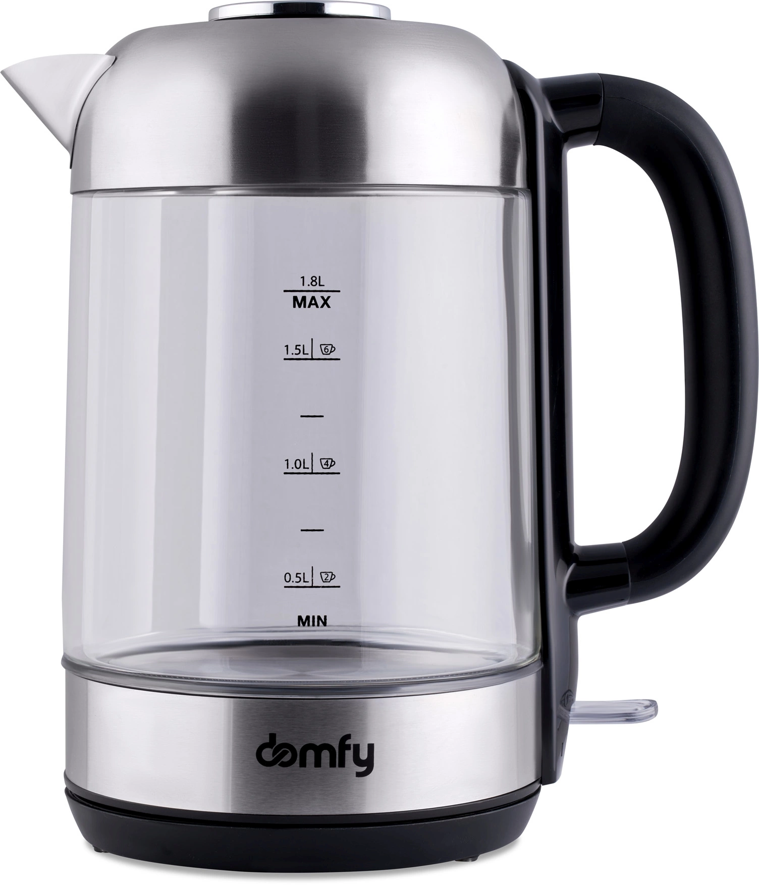 Электрический чайник DOMFY DSM-EK401 объемом 1,8 л успешно совмещает в себе презентабельность и практичность. Корпус электрочайника изготовлен преимущественно из стекла и нержавеющей стали, что обеспечивает сочетание повышенной прочности и продолжительного ресурса. Характерной особенностью модели является полностью съемная крышка, облегчающая заливку воды.