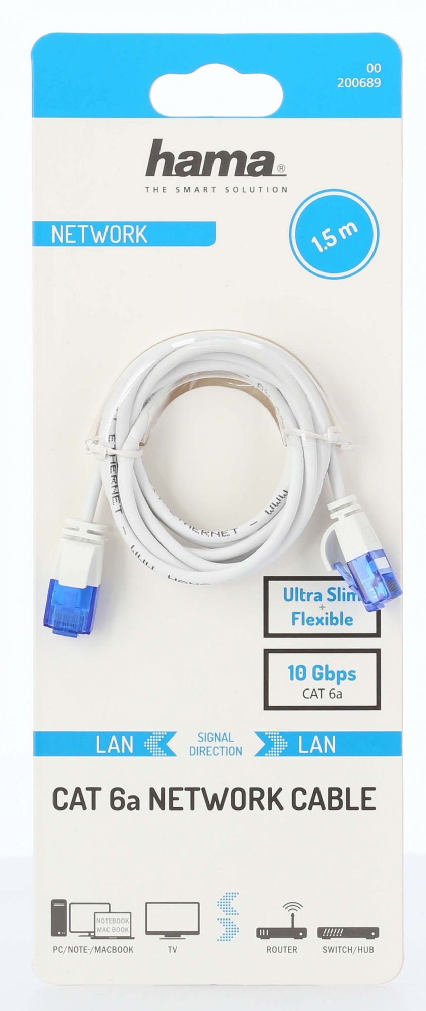 Сетевой кабель Hama "Flexi-Slim", CAT-6a, 10 Гбит/с, U/UTP, 1,50 м. для подключения ПК, ноутбука, телевизора, игровой приставки к маршрутизатору, коммутатору, концентратору или сетевой розетке, для передачи цифрового интернета и сетевых данных и сигналов.