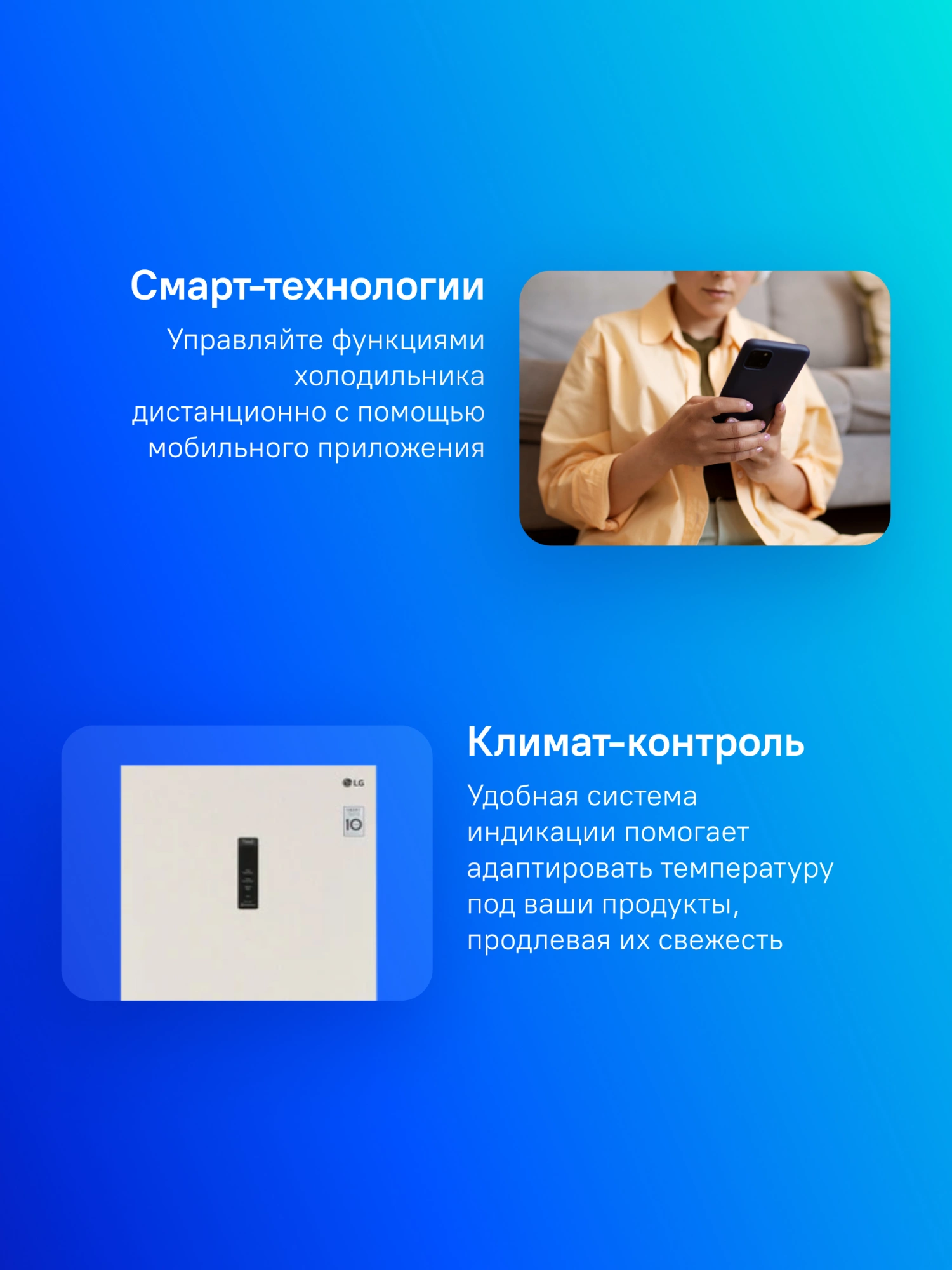Интеллектуальная система диагностики Smart Diagnosis. Управление через Wi-Fi. Возможность управления через приложение LG ThinQ. Антибактериальный дверной уплотнитель Bio Shield. Зона свежести FRESHBalancer. Деодорайзер.
