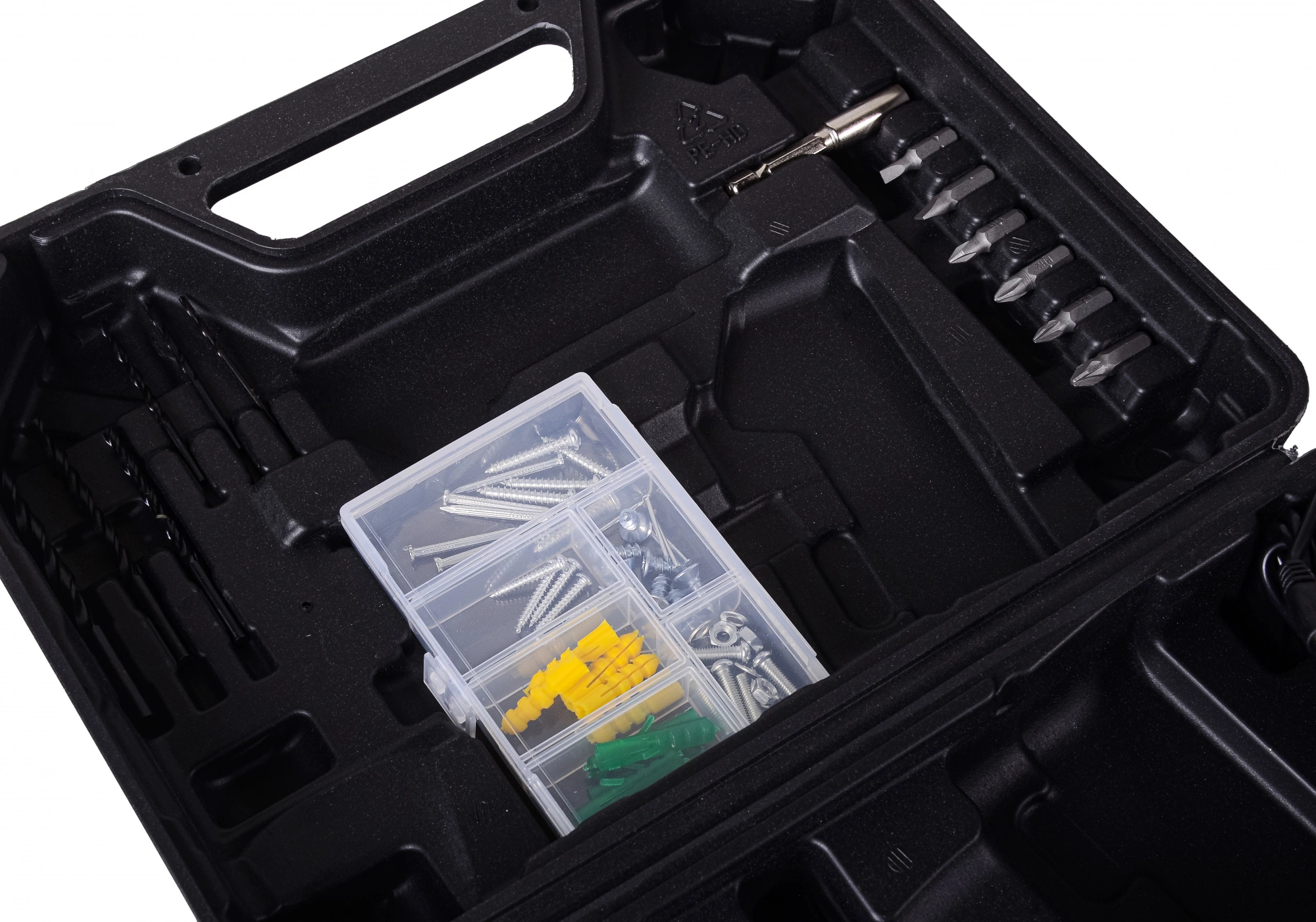 Набор оснастки и крепежа 65 предметов в комплекте. Набор сверл. Адаптер -удлинитель для бит и набор бит.
