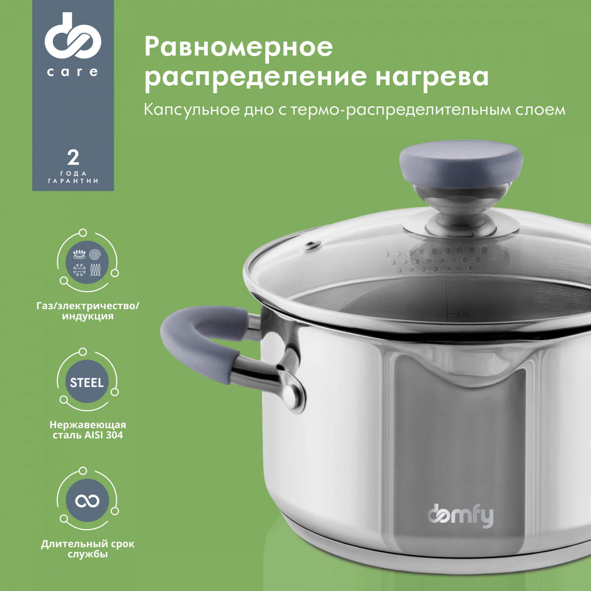 Универсальность. Кастрюли из набора Domfy можно использовать на газовых или электрических плитах, в том числе индукционных.