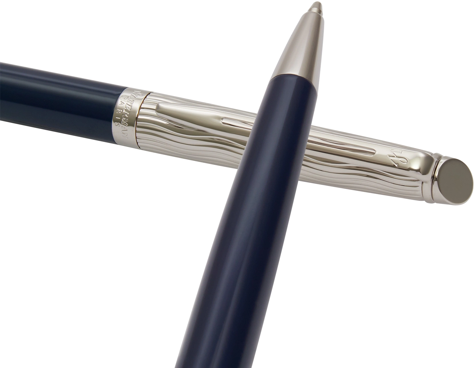 Излучающая парижскую самоуверенность, модная шариковая ручка L'Essence du Bleu Hemisphere покрыта ярким темно-синим лаком, а на металлическом колпачке выгравирован фирменный волнообразный узор Waterman.