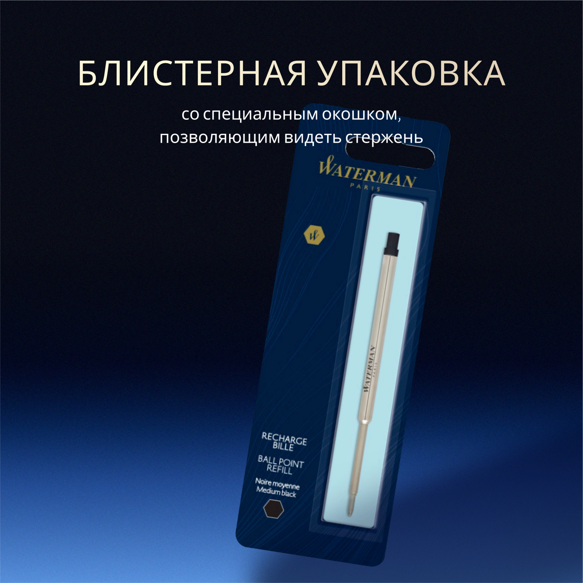 Сменный стержень для шариковых ручек Waterman в блистерной упаковке.