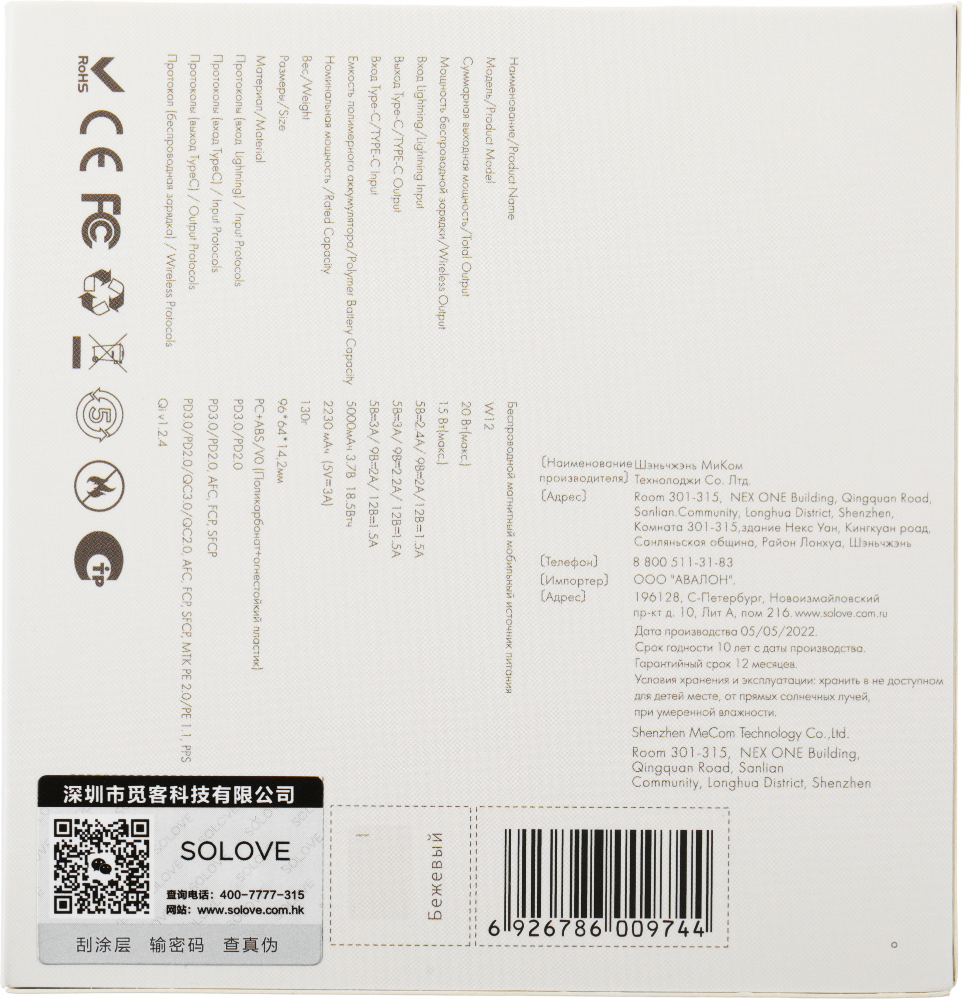 5000mAh QC3.0/PD3.0 20W 3A USB-C беспров.зар. беж...
