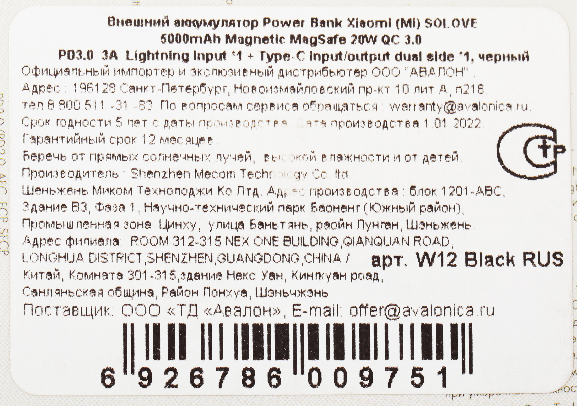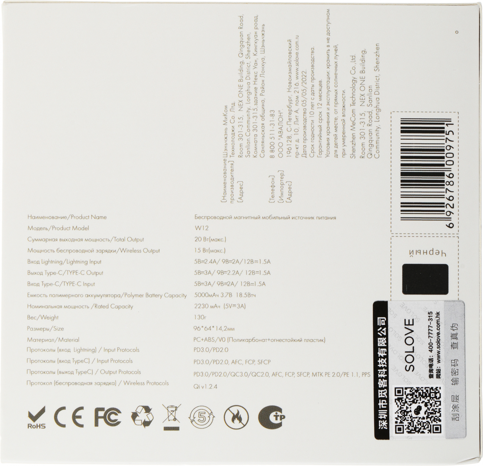 5000mAh QC3.0/PD3.0 20W 3A USB-C беспров.зар. чер...
