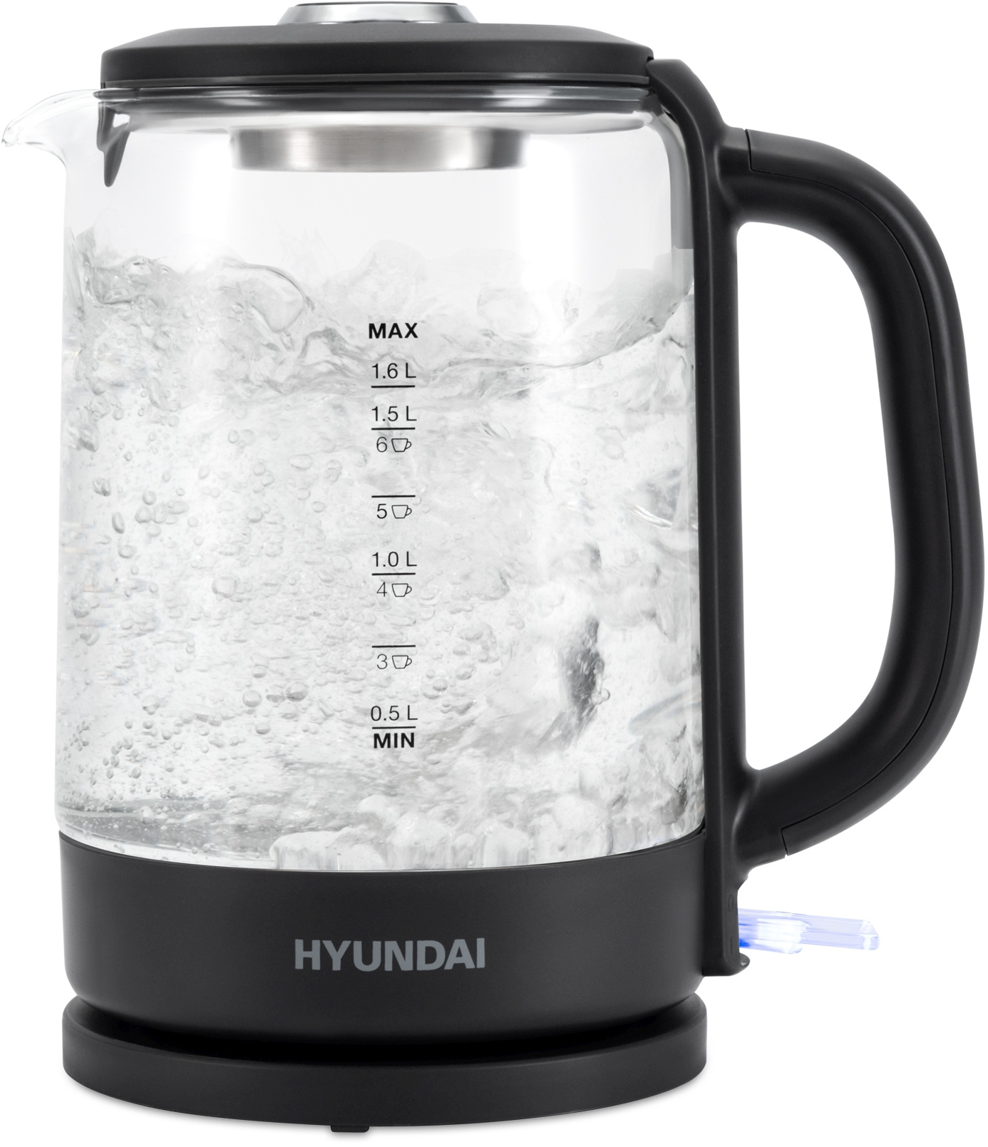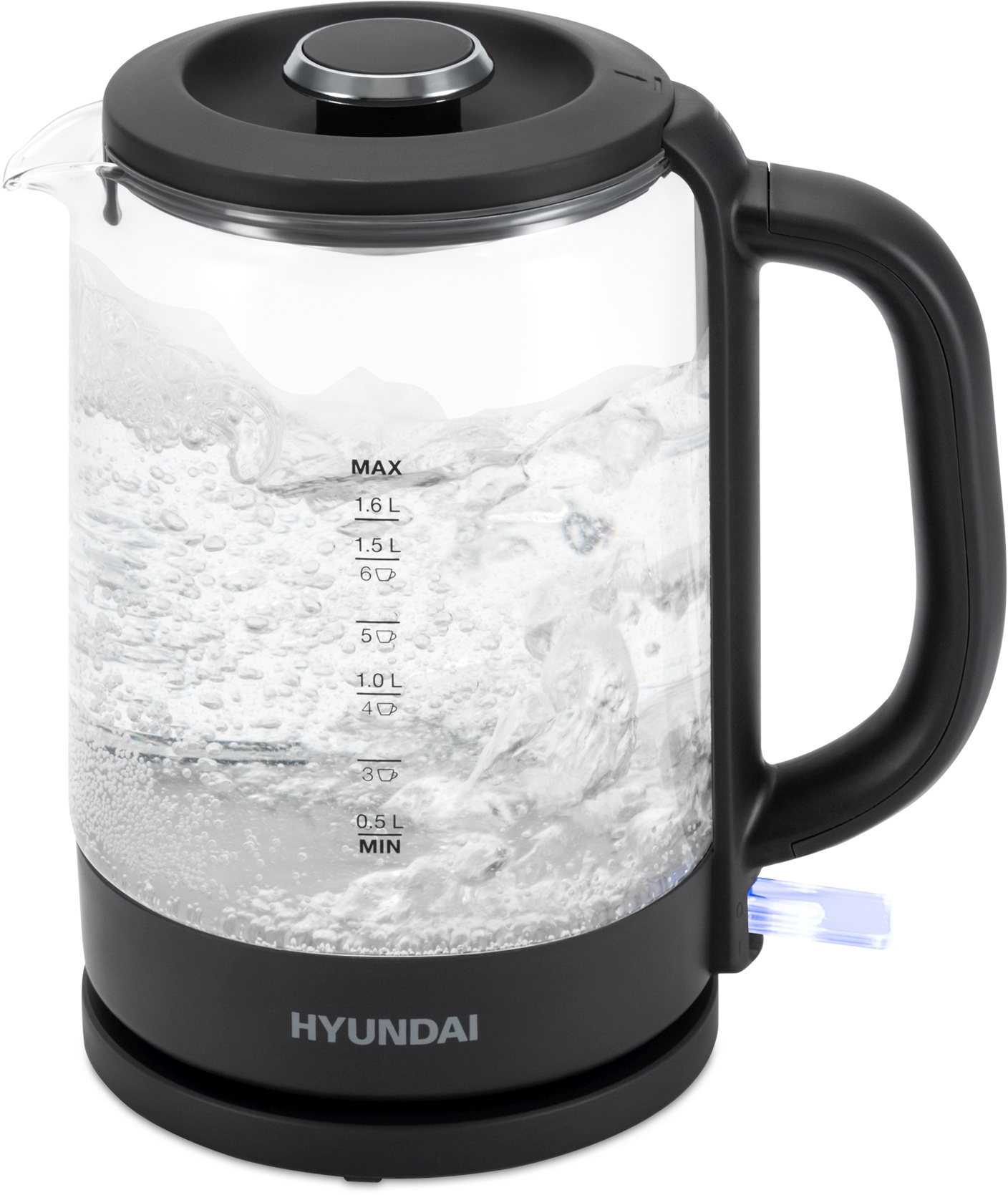 Hyundai HYK-G3402 – это эргономичный современный чайник со скрытым нагревательным элементом и минимальным временем кипячения.