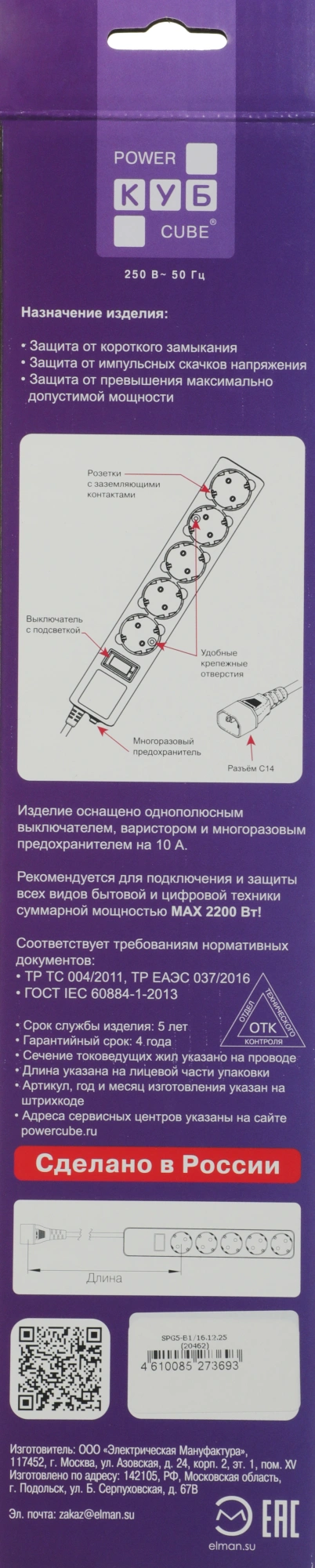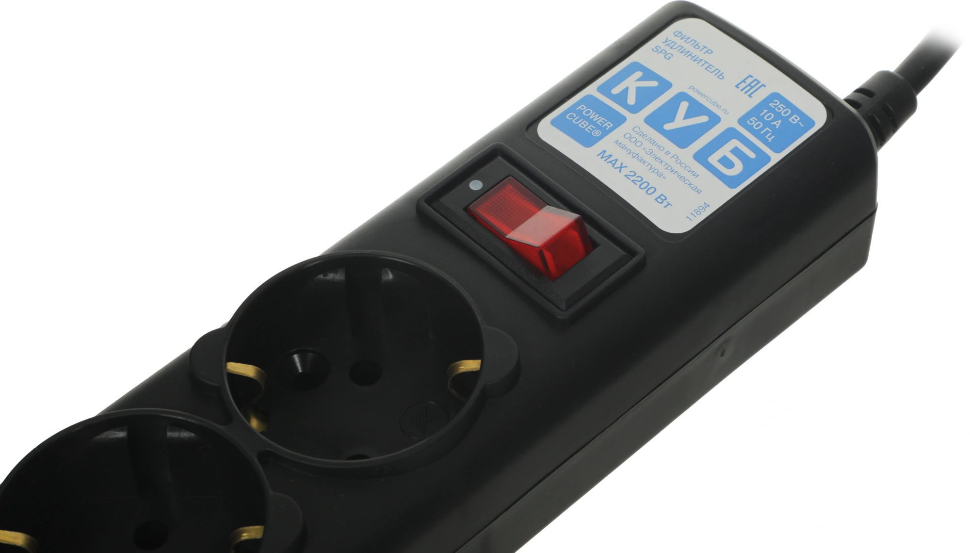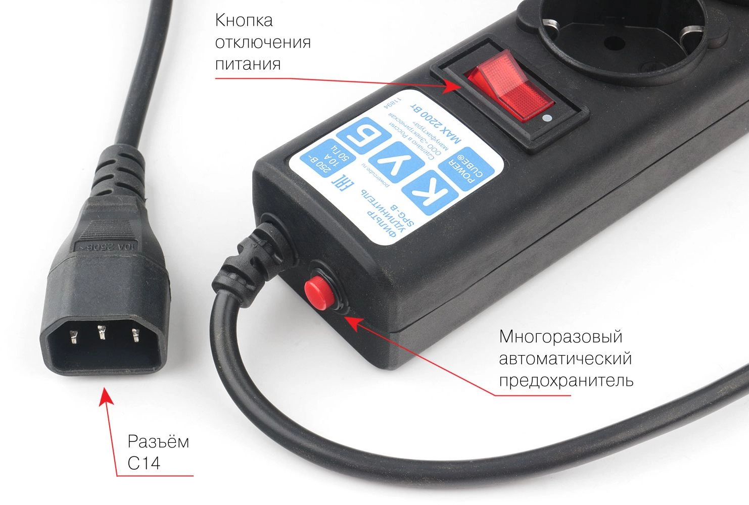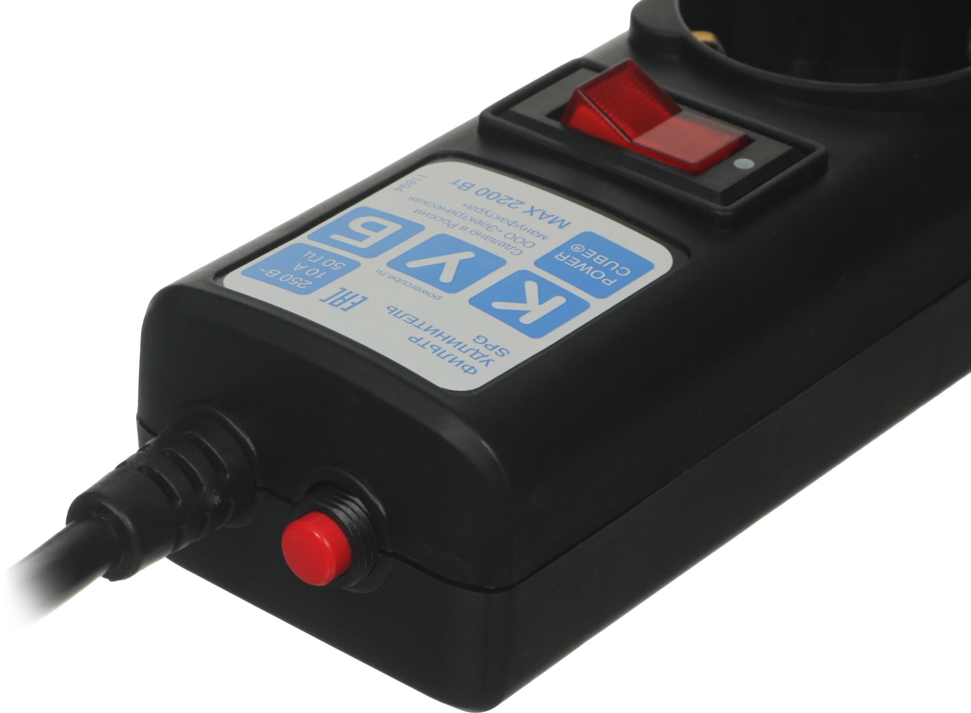 Однополюсный выключатель. Многоразовый автоматический предохранитель. Защита от импульсных помех и короткого замыкания. Материал корпуса соответствует требованиям пожаробезопасности. Отверстия для крепежа.