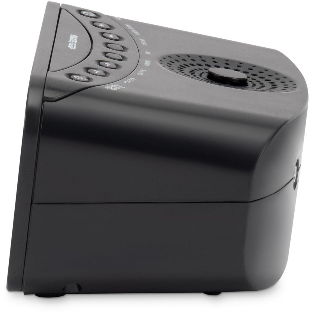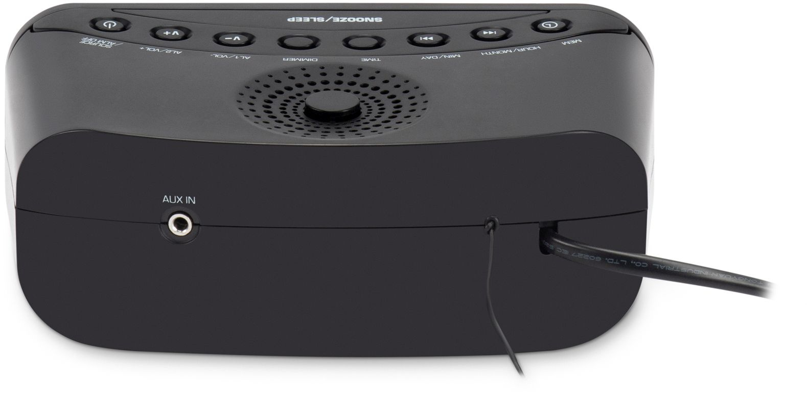 Жидкокристаллический дисплей девайса выполнен с диагональю 1.2 дюйма. Цифры на нём имеют четко очерченный контур и прекрасно различимы в темноте. Корпус устройства сделан из чёрного пластика. Он лёгкий и прочный, собран качественно и без люфтов. На верхней части часов расположены кнопки, необходимые для настройки и использования всего функционала. Он включает эргономичный будильник с двойным временным интервалом, который невозможно проспать. В качестве звукового сигнала может выступать стандартный или радио. FM-тюнер – ещё одна полезная особенность данной модели. Он работает в пределах 87.5-108 МГц и принимает большинство станций. Просыпаться под радиоэфир гораздо приятнее, а также к этому звуку сложнее привыкнуть.