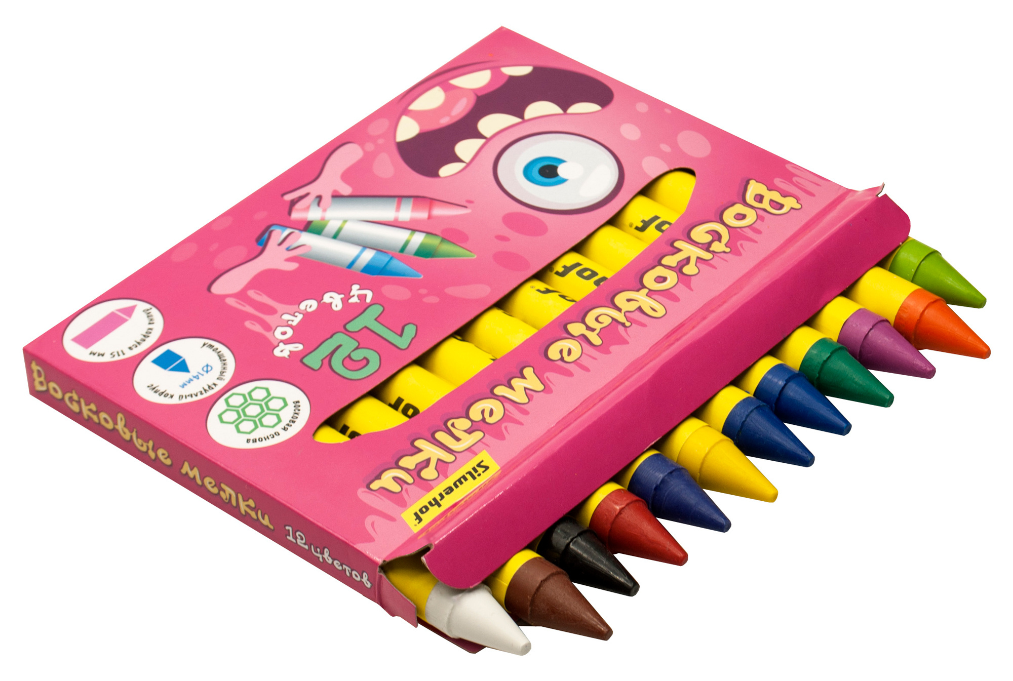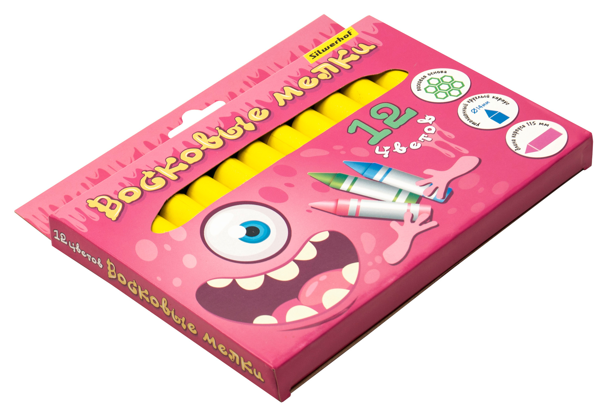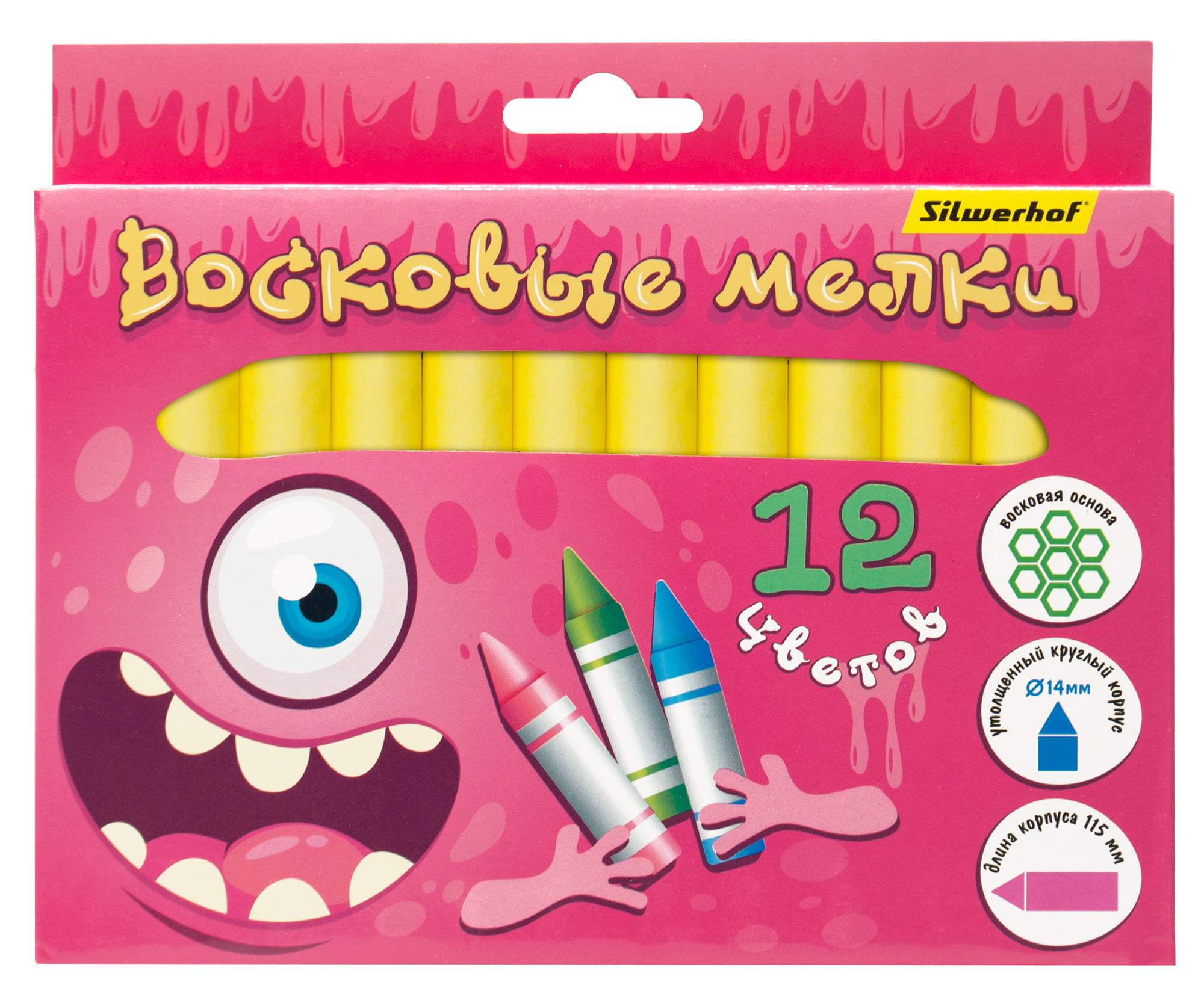 Монстрики круглые 12цв. дл.115ммд.14мм картон.кор.
