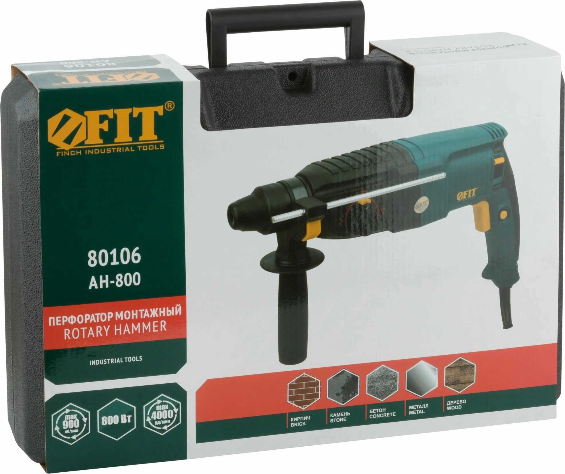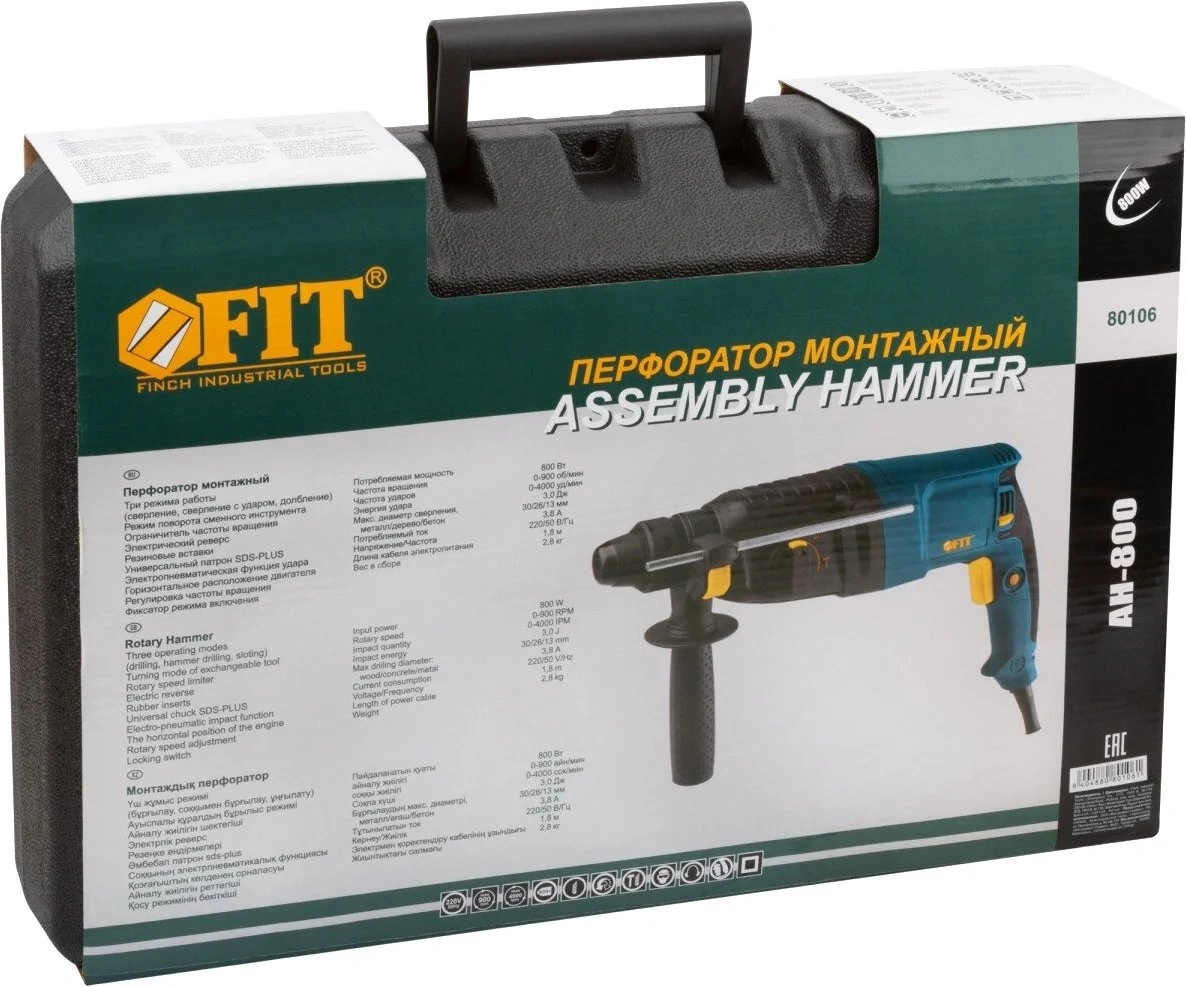 Инструкция по эксплуатации, перфоратор, дополнительная рукоятка, глубиномер, набор сменного инструмента, кейс.