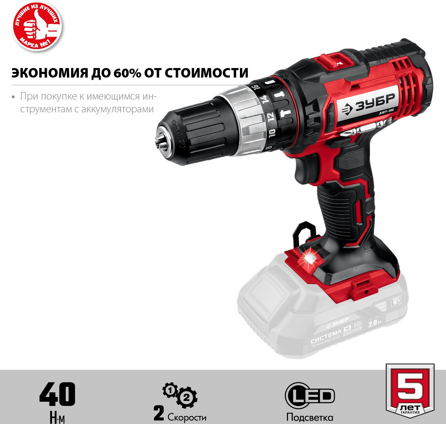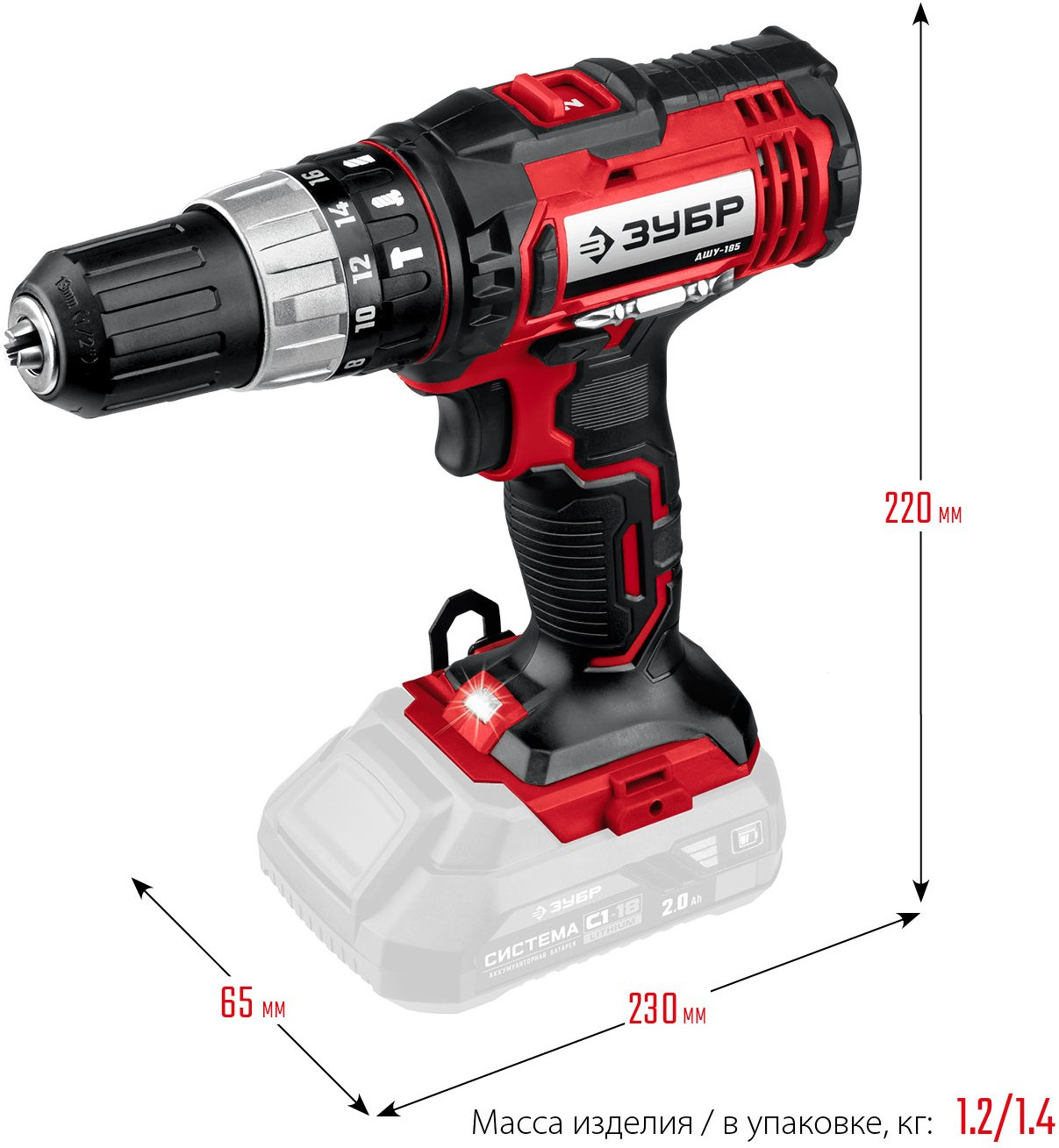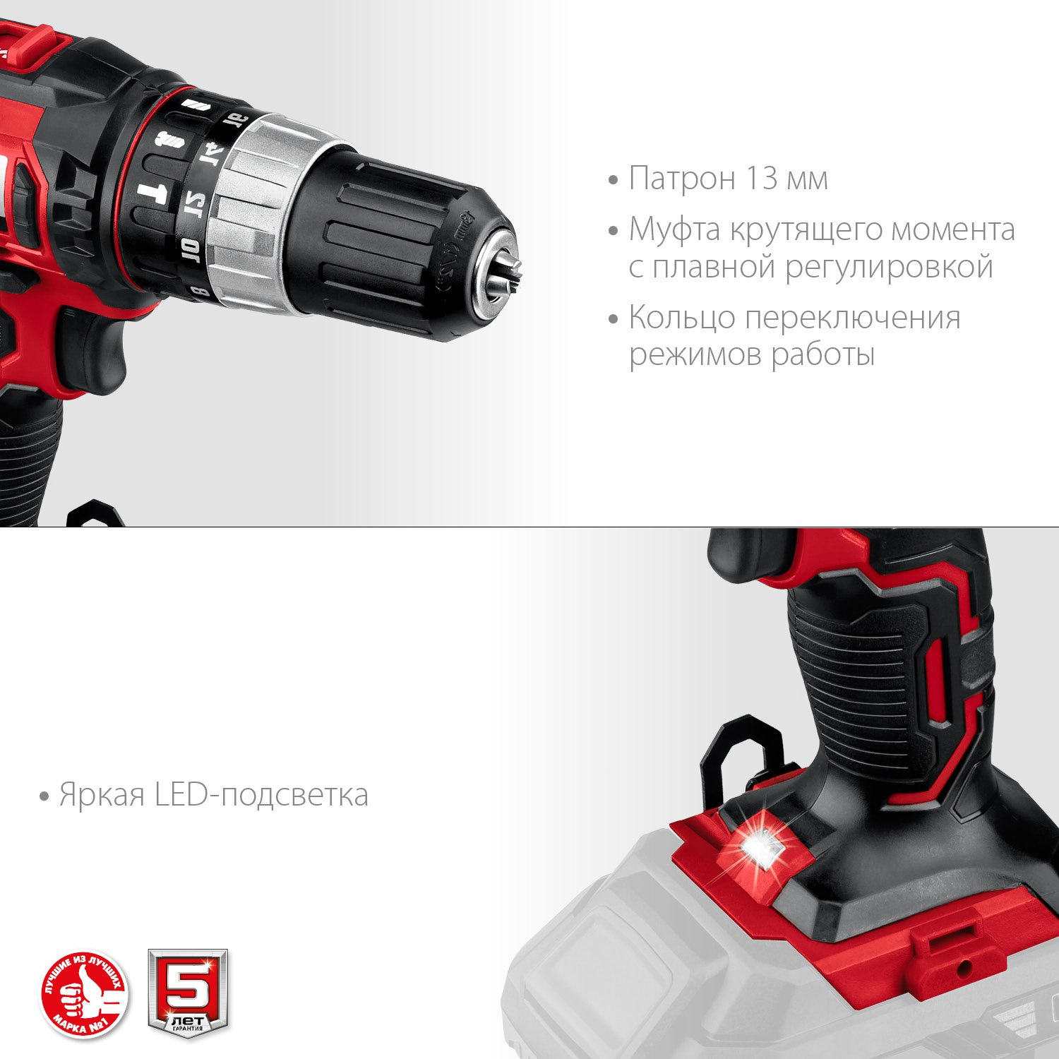 Ударная дрель-шуруповерт, бита 50 мм. (PH, PZ), скоба поясная, руководство по эксплуатации.