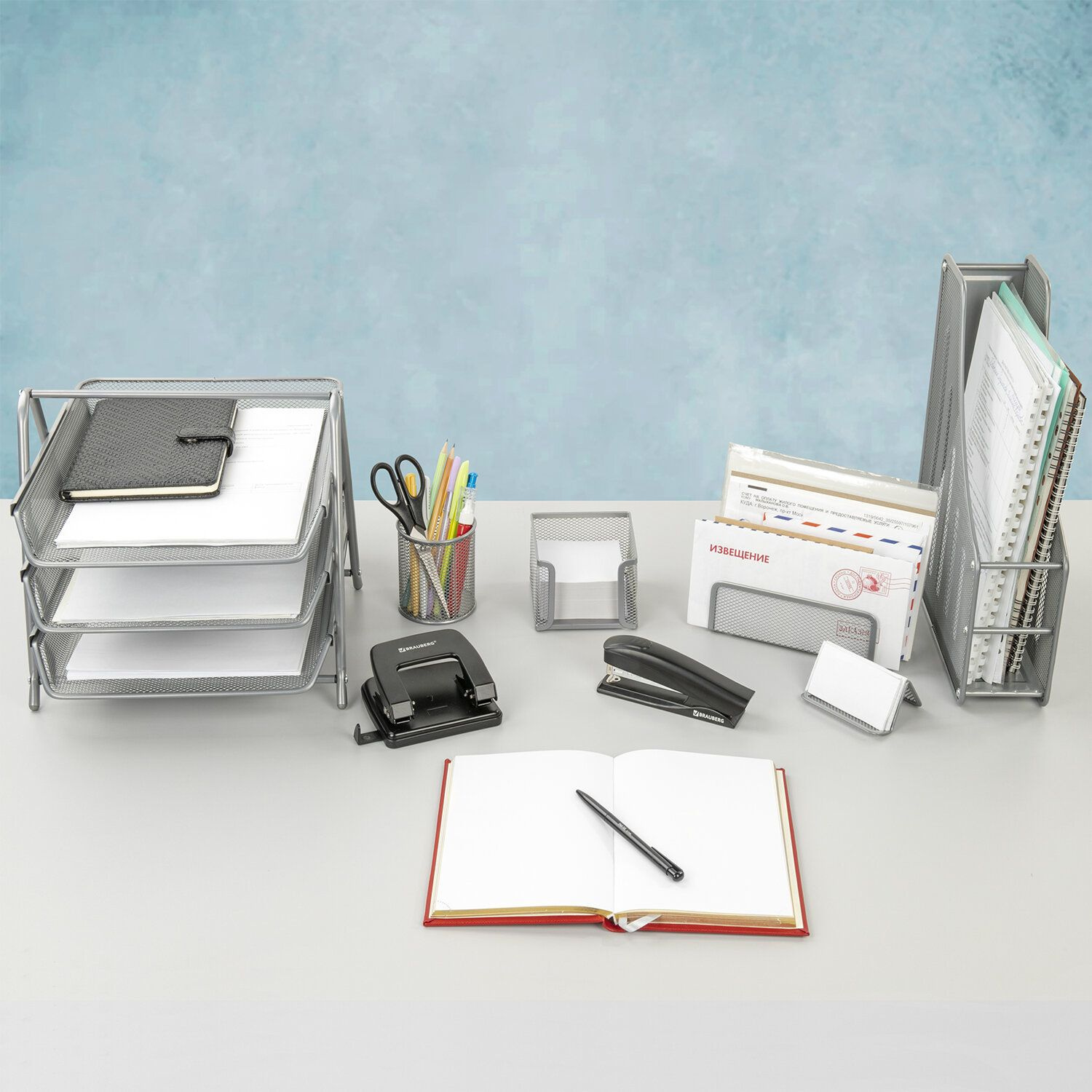 трехсекционный горизонтальный лоток для бумаг А4; трехсекционная подставка для бумаг и писем; подставка для бумажного блока; вертикальный лоток; подставка-органайзер для пишущих принадлежностей; подставка для визиток