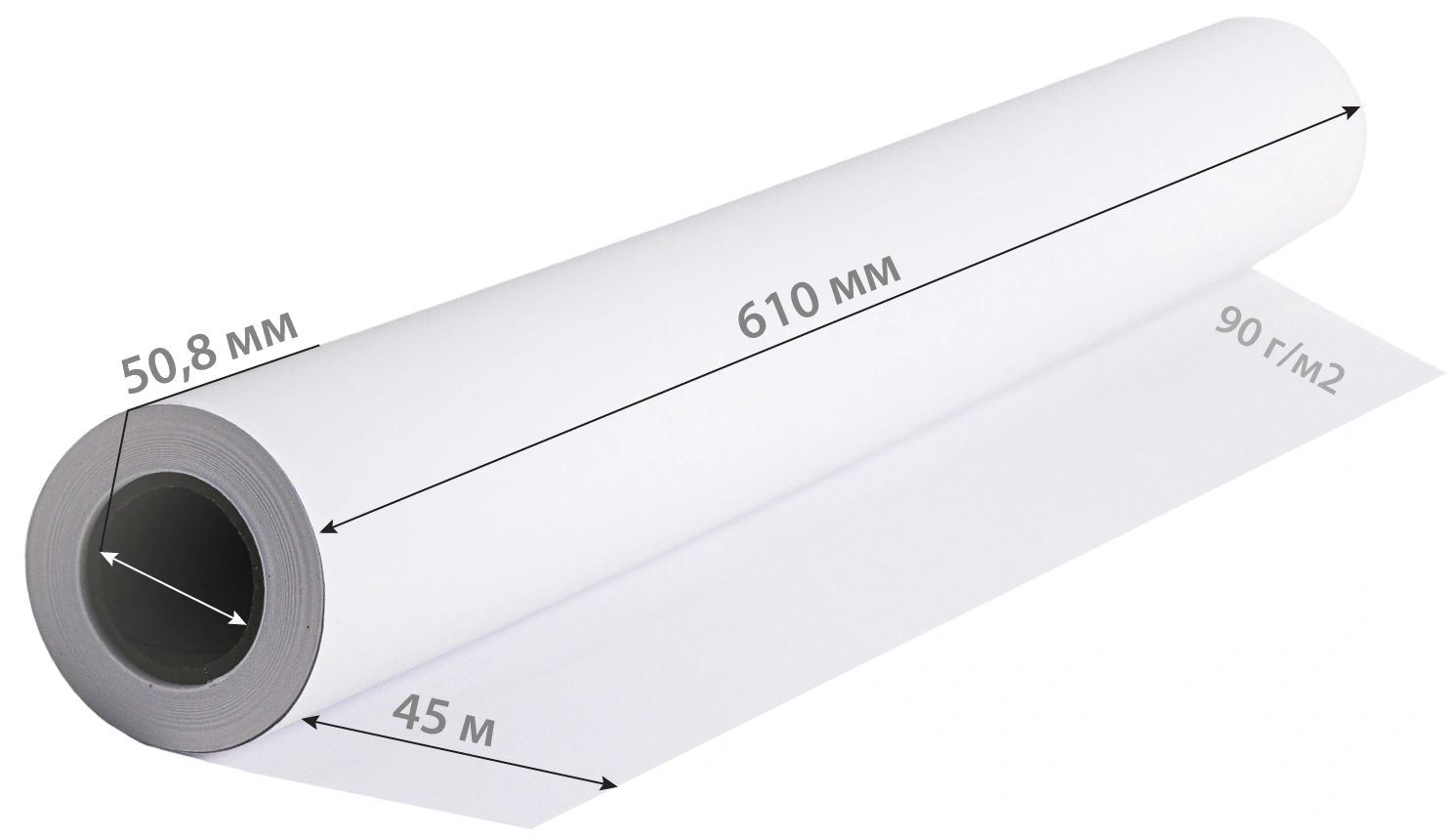 24"(A1) 610мм-45м/90г/м2/белый CIE155% матовое уни...