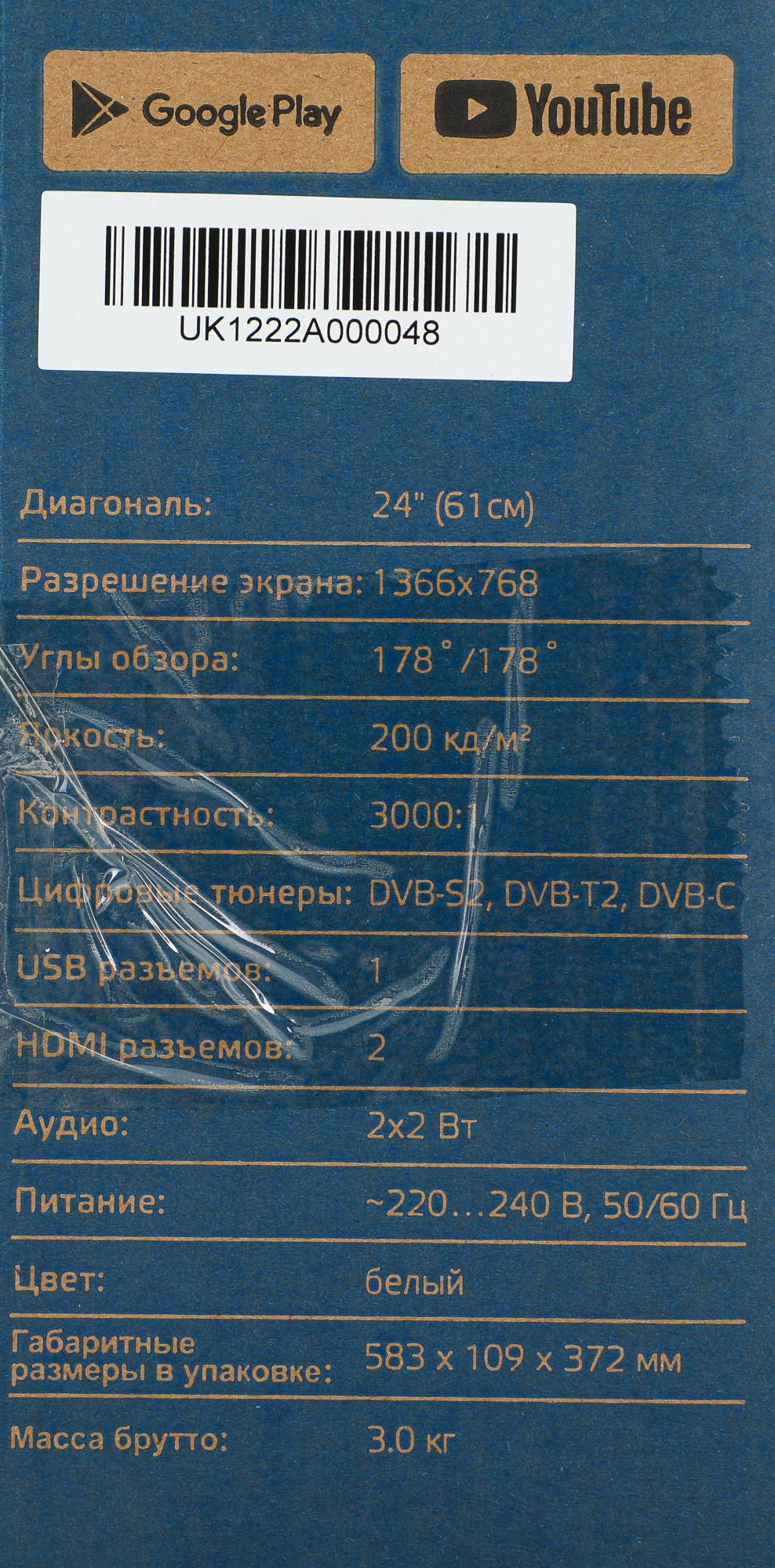 Android TV белый HD 60Hz DVB-T DVB-T2 DVB-C DVB-S ...