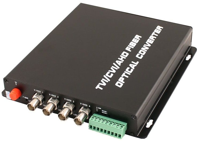 Оптический приёмник 4 каналов видео HDCVI/HDTVI/AHD/CVBS и 1 двунаправленного канала управления (RS485/полудуплекс) по одномодовому оптоволокну до 20км.