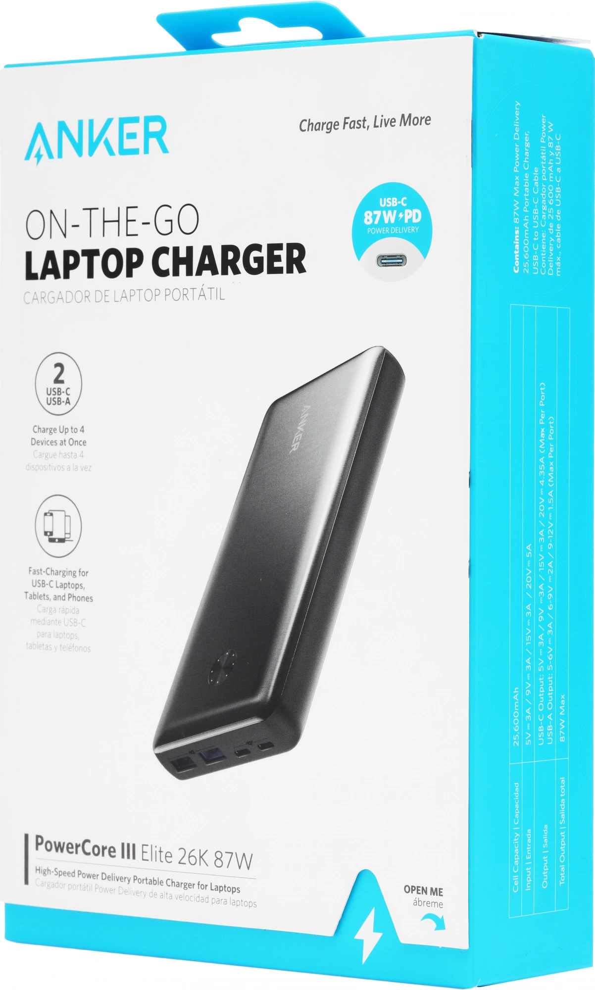 Портативный аккумулятор Anker PowerCore III Elite A1291H11 обеспечивает быструю зарядку вашего телефона или планшета где бы вы ни находились.