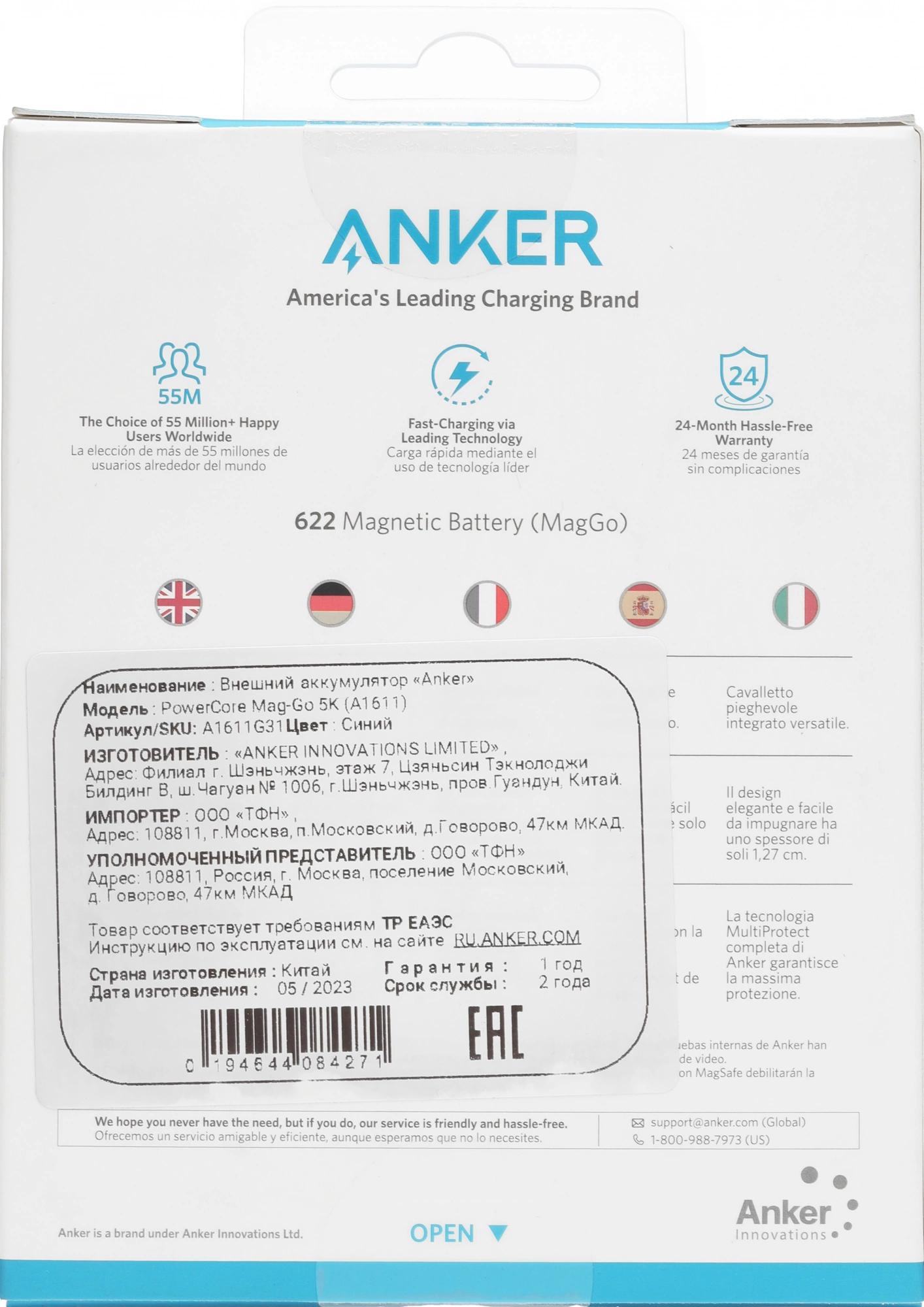5000mAh PD 2.4A USB-C беспров.зар. голубой (A1611...