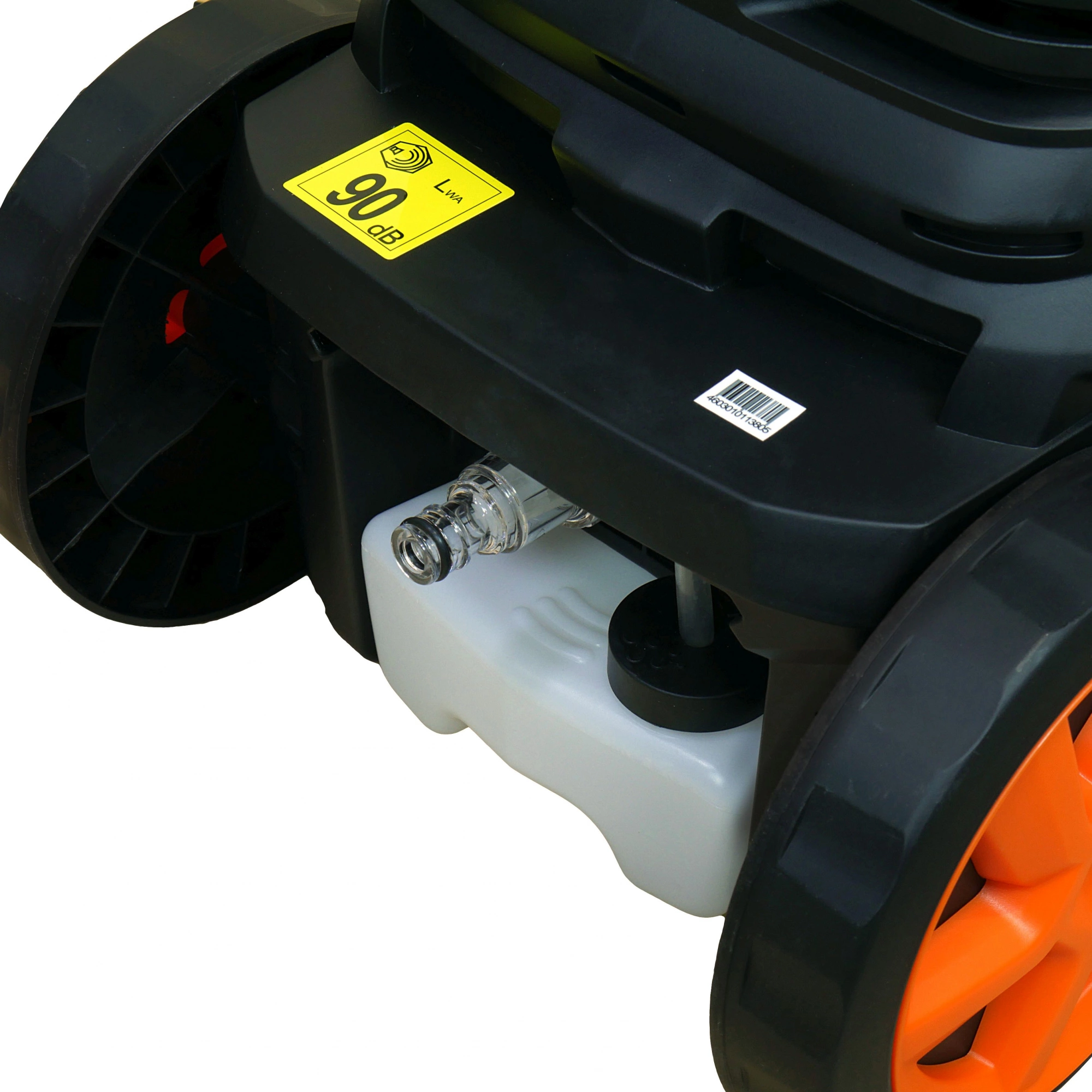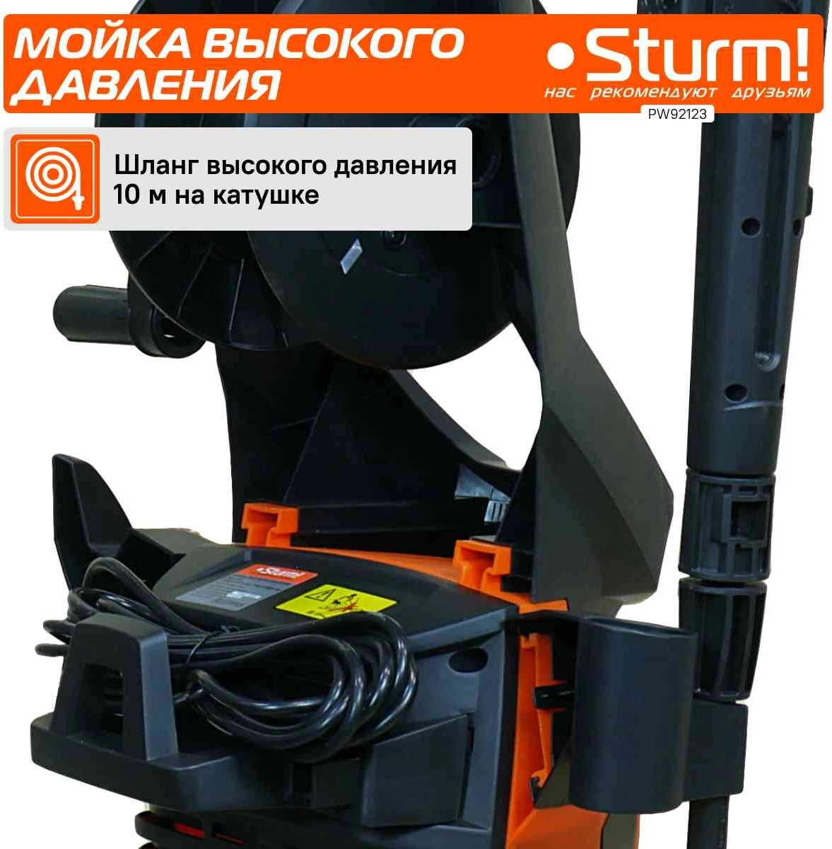 Увеличенный до 10м эластичный шланг высокого давления на барабане позволяет свободно мыть автомобиль, чистить крыши дачных построек и другие объекты не передвигая мойку. Благодаря своей эластичности шланг легко разматывается и сматывается на барабан, не спутывается во время работы.