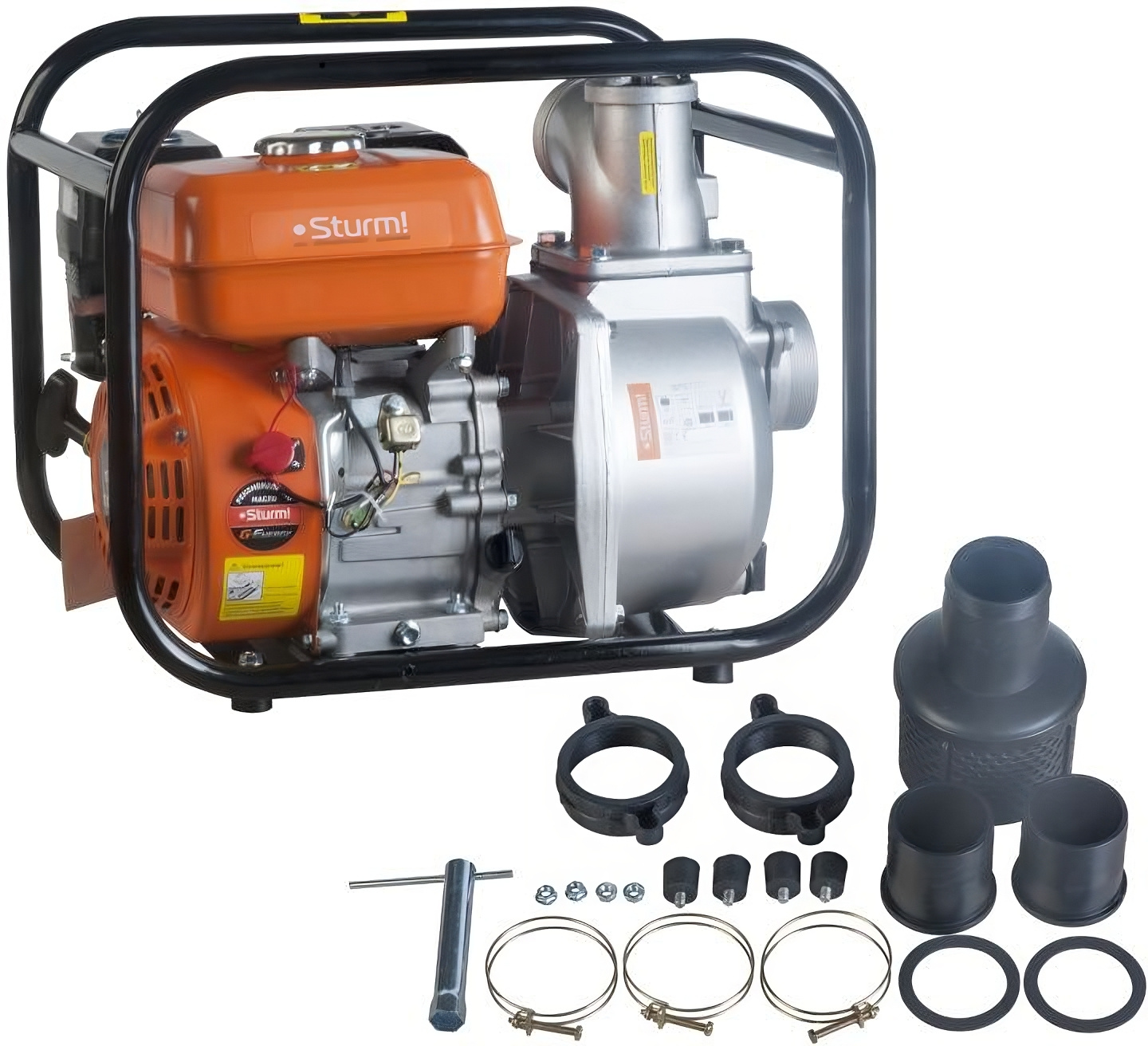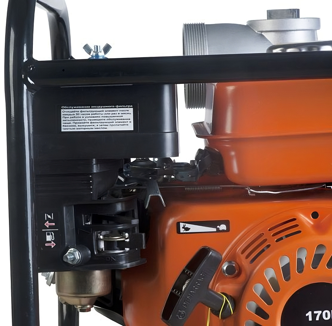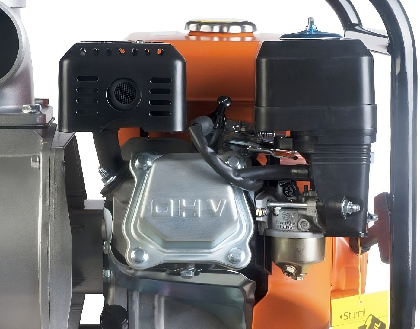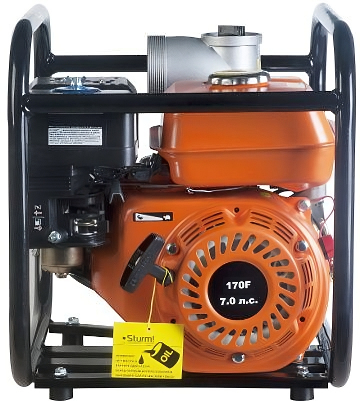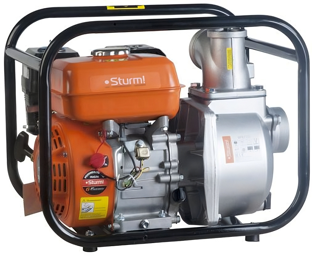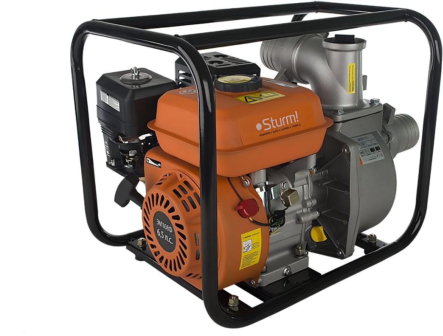 Самовсасывающий насос с 4-тактным бензиновым двигателем. Имеет широкое применение: водоснабжение строительных площадок, жилых домов, дачных участков, орошение и полив полей и садовых участков, выкачивание воды из водоемов, бассейнов и др.