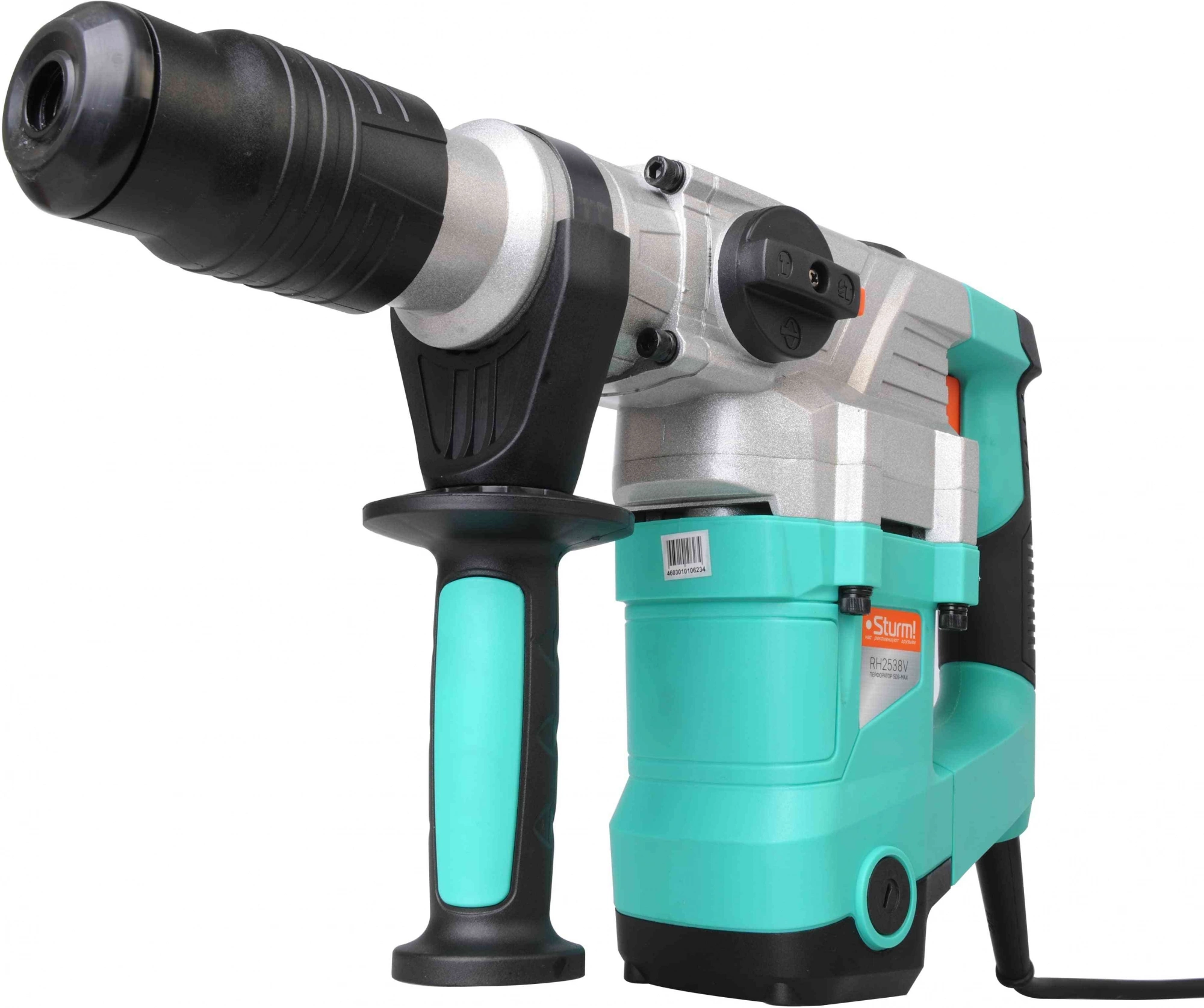 Перфоратор, дополнительная рукоятка (установлена), бур SDS-MAX, плоское зубило SDS-MAX, смазка для хвостовиков буров, ключ, дополнительные угольные щетки (комплект, 2 шт.), инструкция по эксплуатации, кейс.