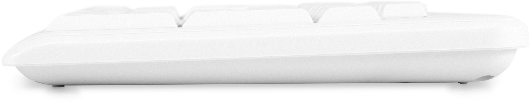 Oklick K225W – эргономичная беспроводная клавиатура с корпусом в стильном белом цвете. Она подойдет для комфортной работы в офисе и дома. Модель оборудована 113 клавишами, из них 9 – вынесены в отдельный блок и предназначены для выполнения разных мультимедийных команд. Устройство отличается долгим сроком службы: выдержит до 10 млн нажатий.