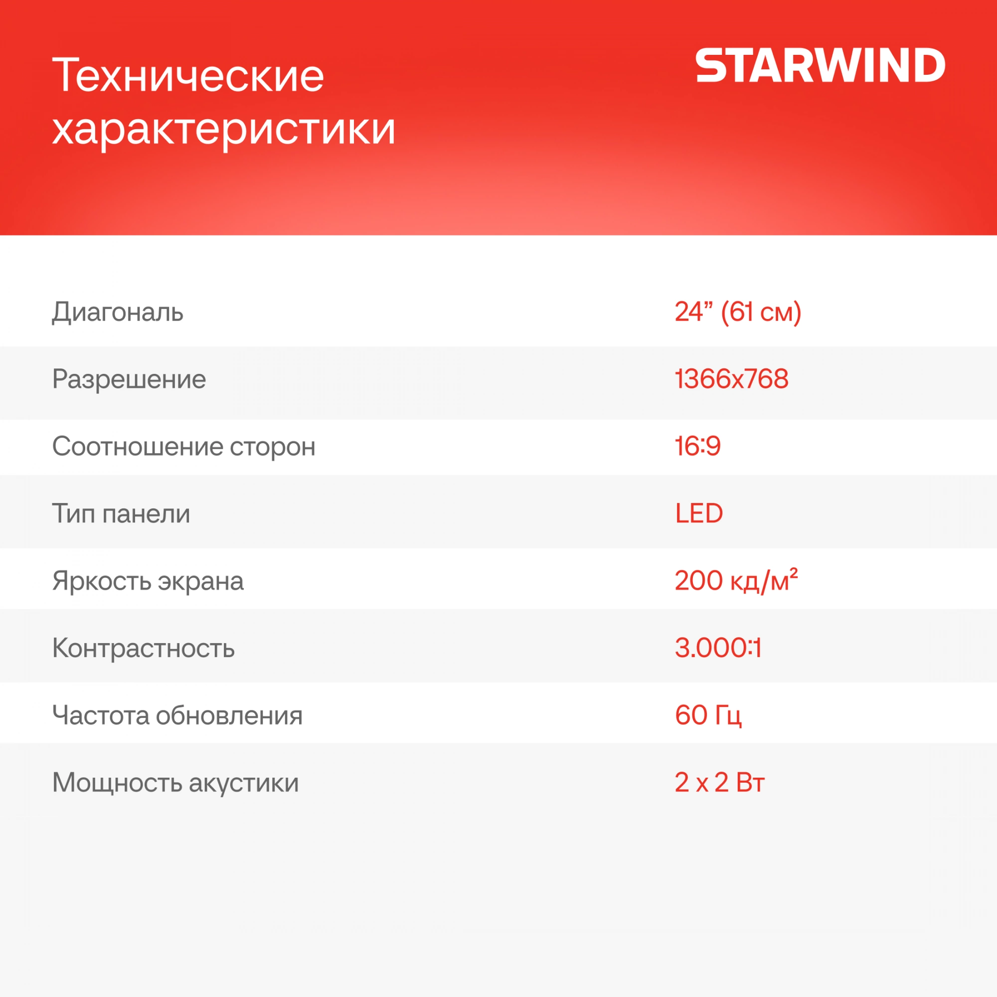 Starwind 24"" SW-LED24SG304 – это современный умный телевизор с богатым набором полезных функций.