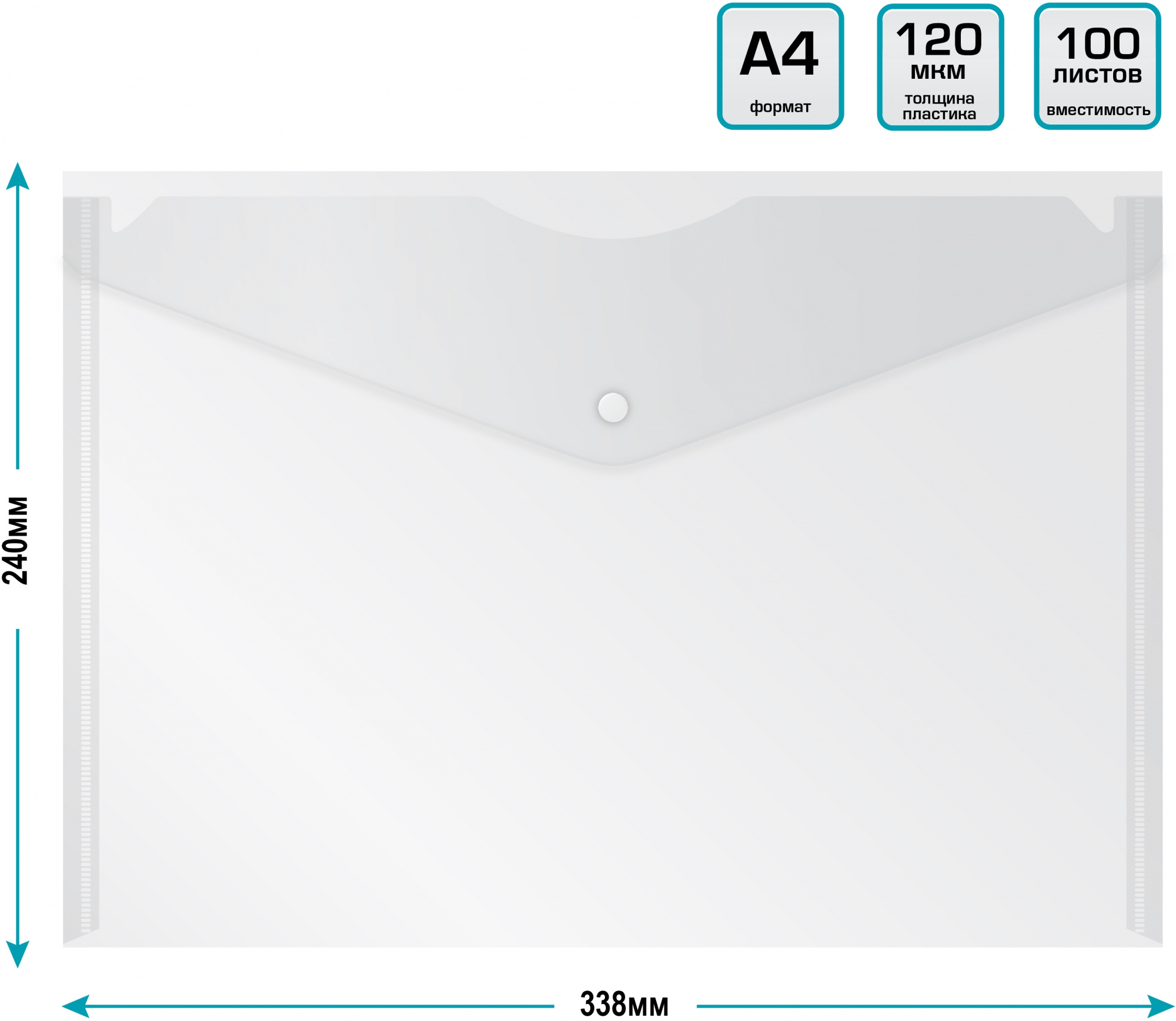 Конверт на кнопке Buro -PK120BU/CLEAR A4 пластик 0.12мм прозрачный
