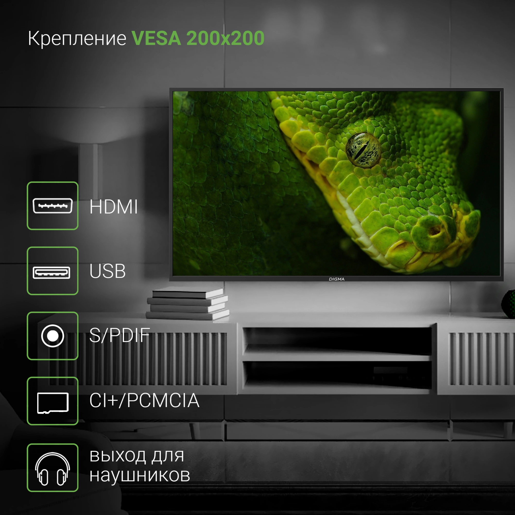 Телевизор DIGMA DM-LED43MBB21 позволит наслаждаться просмотром любимых передач. Технология LED обеспечивает естественную цветопередачу и максимальную детализацию кадров.