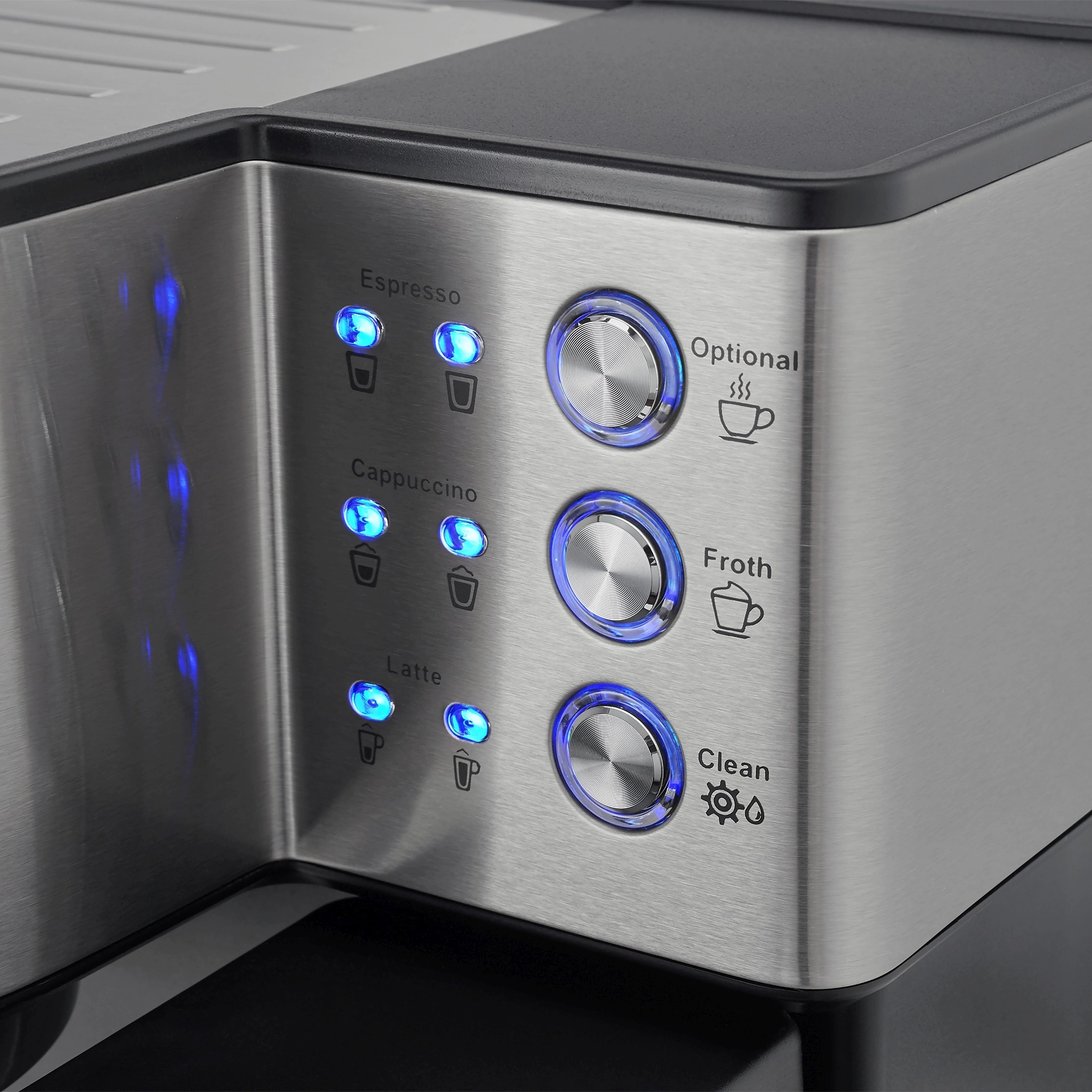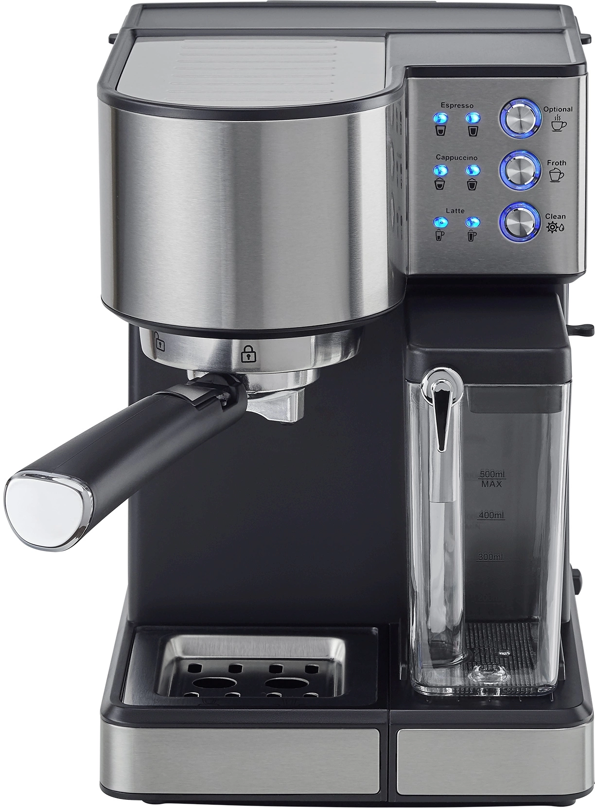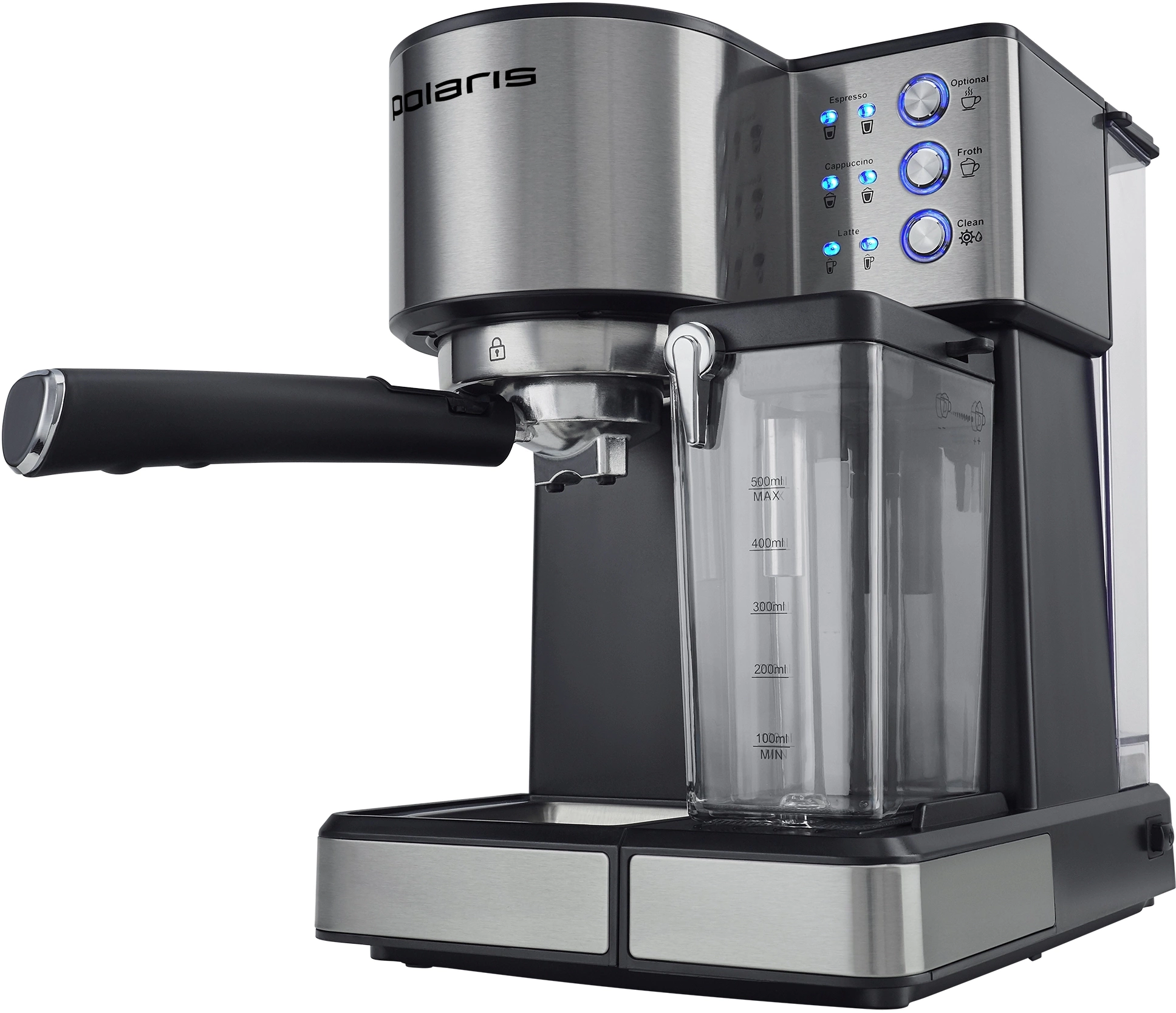 два независимых бойлера, капучинатор, панель для подогрева чашек, съемный поддон для капель, съемный резервуар для воды