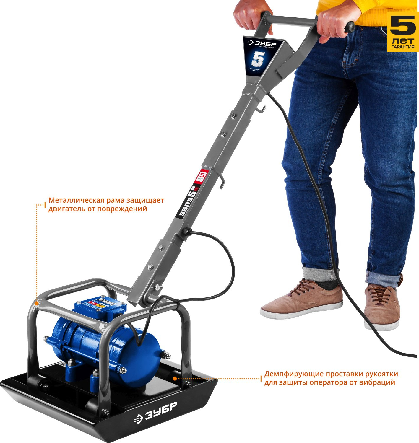 Виброплита, рукоятка верхняя часть, рукоятка нижняя часть, крепежный набор 1 компл., инструкции по безопасности, руководство по эксплуатации.