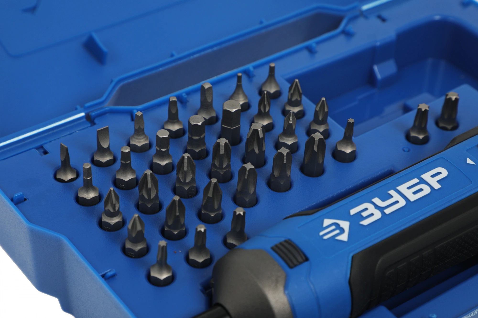 Отвертка, зарядный провод, насадки 25 мм. (33 PH1 - 3 шт., PH2 - 3 шт., PZ1 - 3 шт., PZ2 - 3 шт., SL3 - 2 шт., SL4 - 2 шт., SQ0 - 2 шт,. SQ1 - 2 шт., SQ2 - 2 шт., HEX- 7 шт., Т9 - 1 шт., T10 - 1 шт., T15 - 1 шт.), кейс, руководство по эксплуатации.