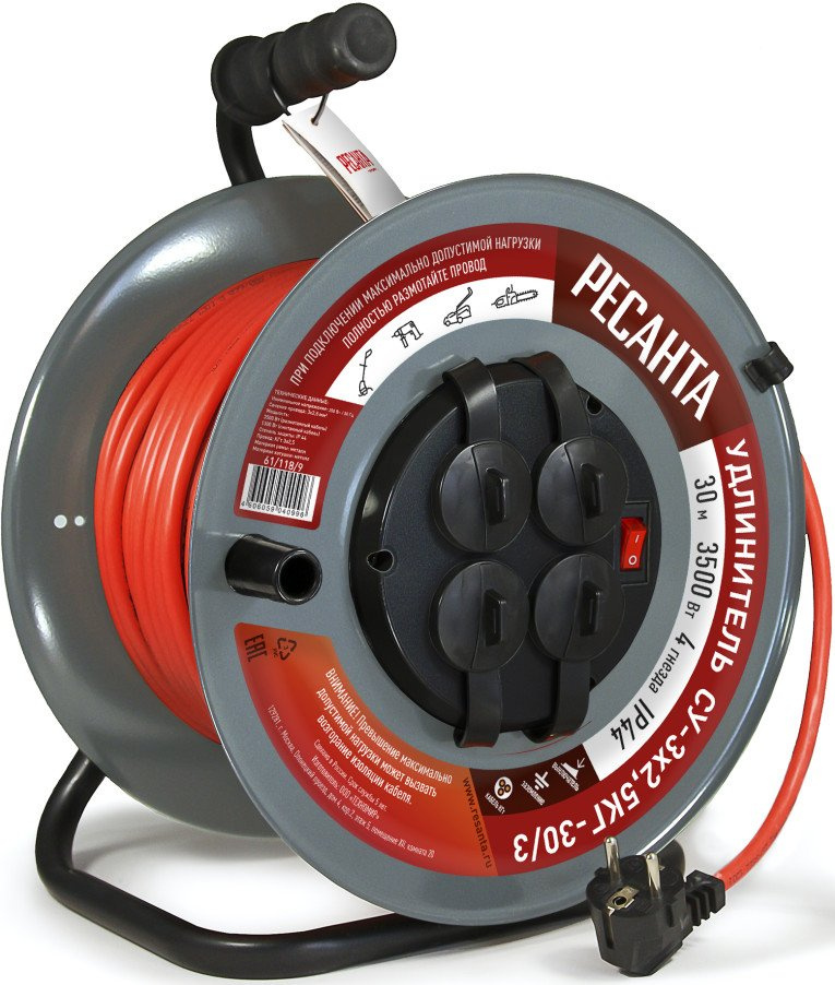(61/118/9) 3x2.5кв.мм 4розет. 30м ПВС 16A метал.ка...
