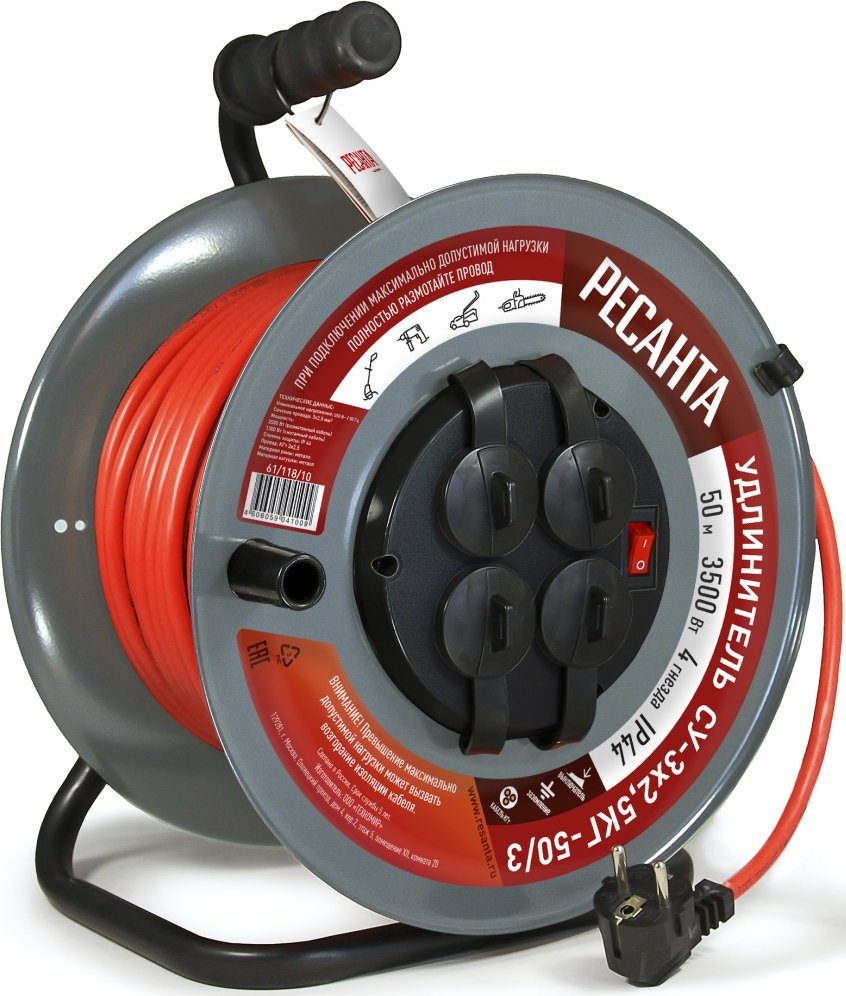 (61/118/10) 3x2.5кв.мм 4розет. 50м КГ 16A метал.ка...