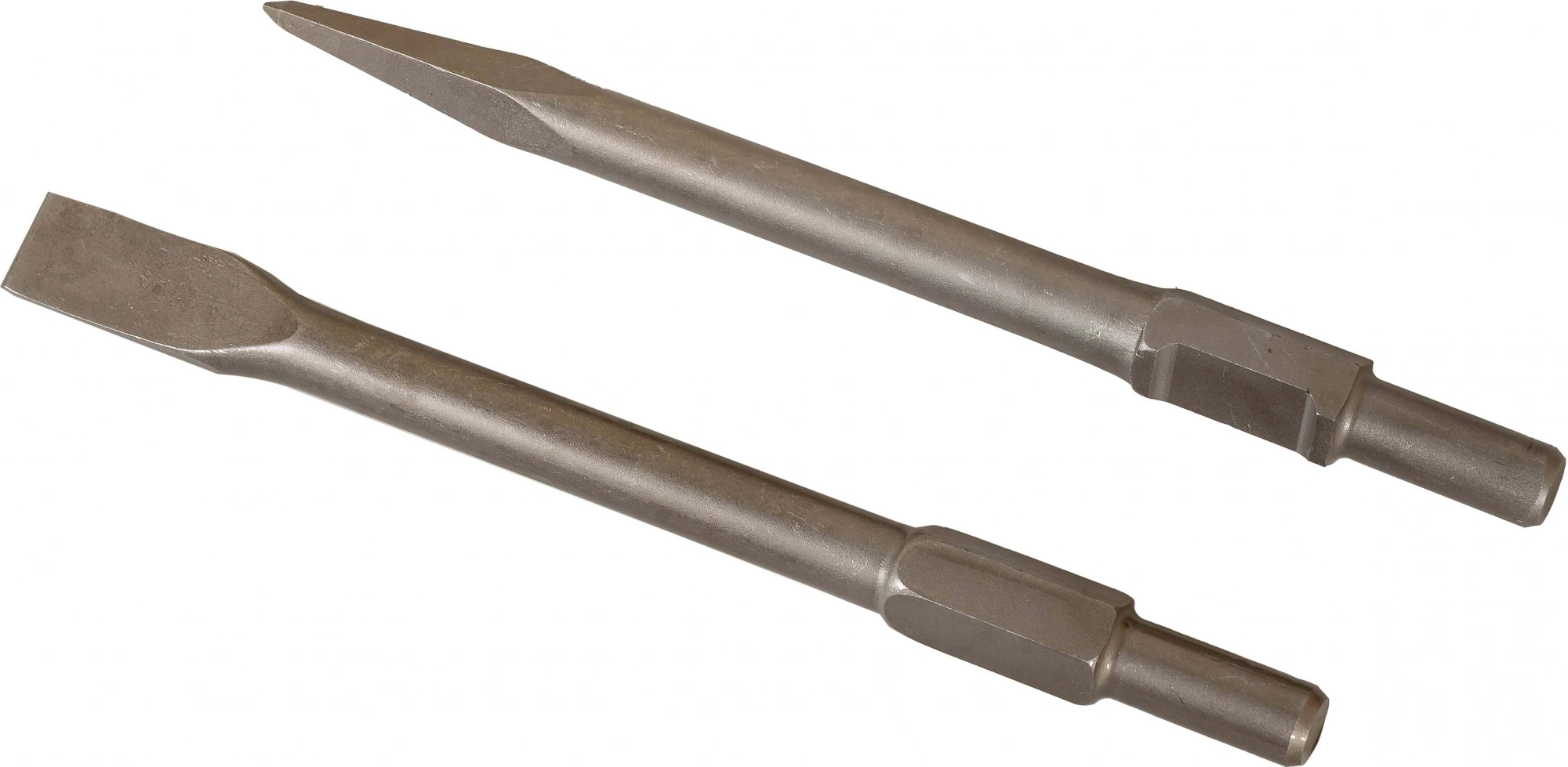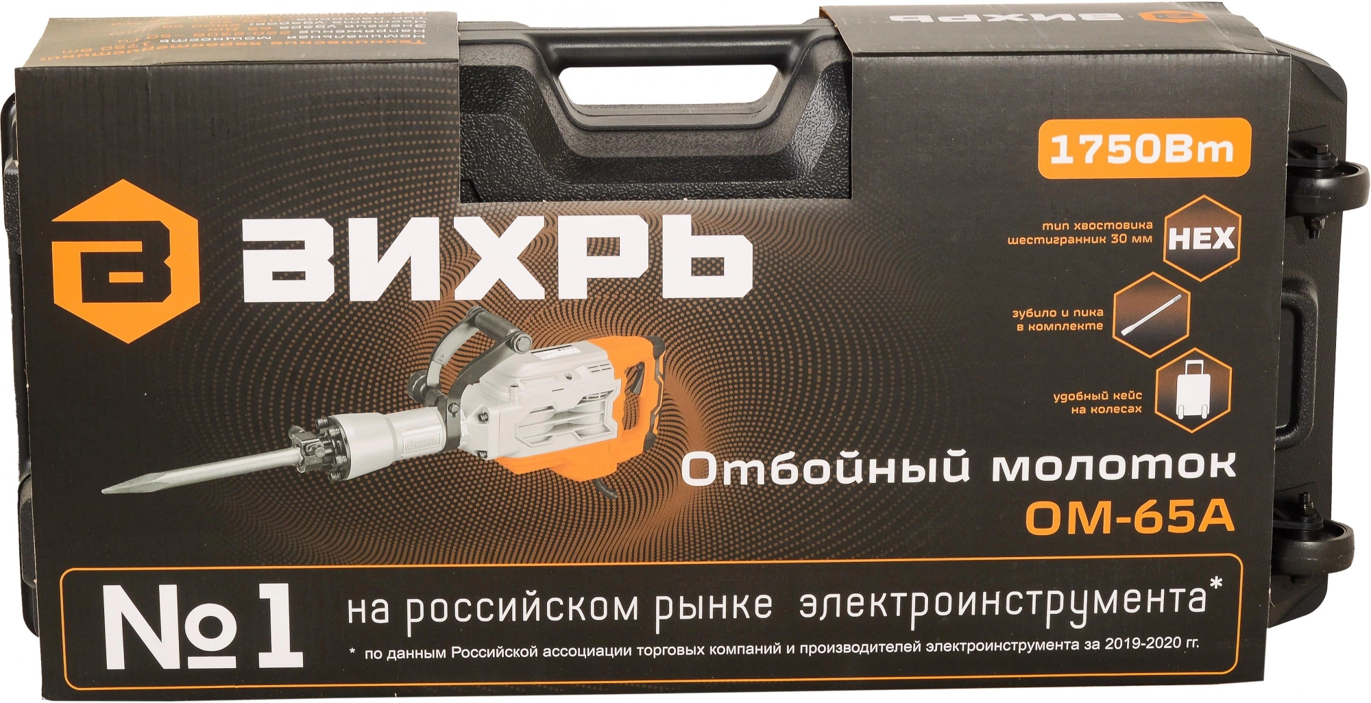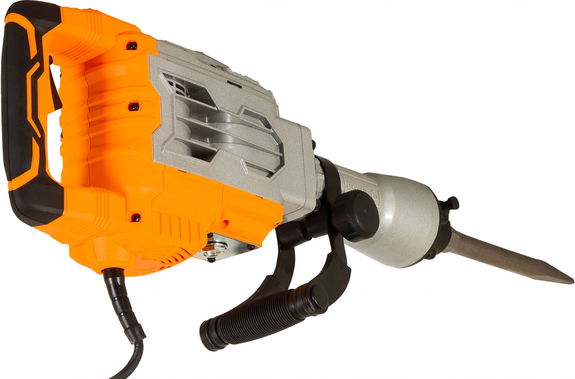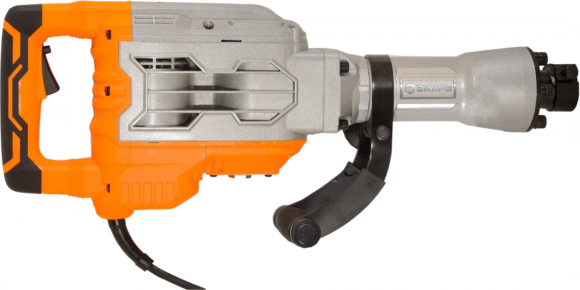 Кнопка фиксации клавиши включения, клавиша включения, кабель питания, смотровое окно уровня масла редуктора/маслоналивная горловина, сменная оснастка, фиксатор сменной оснастки, патрон, фиксатор дополнительной рукоятки, дополнительная рукоятка. Пика, зубило и тюбик со смазкой в комплекте