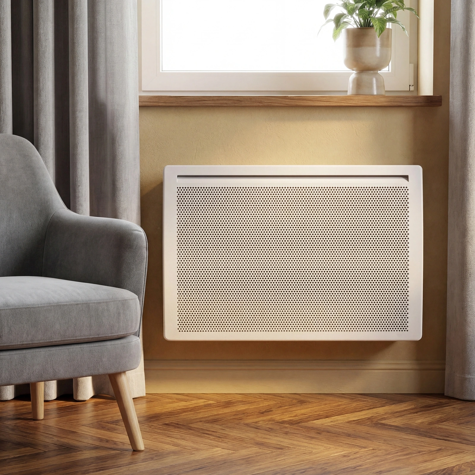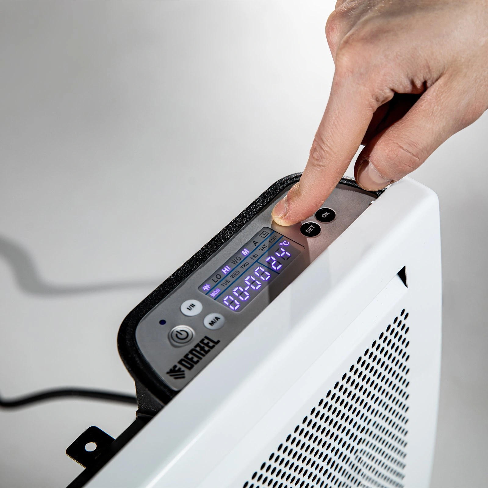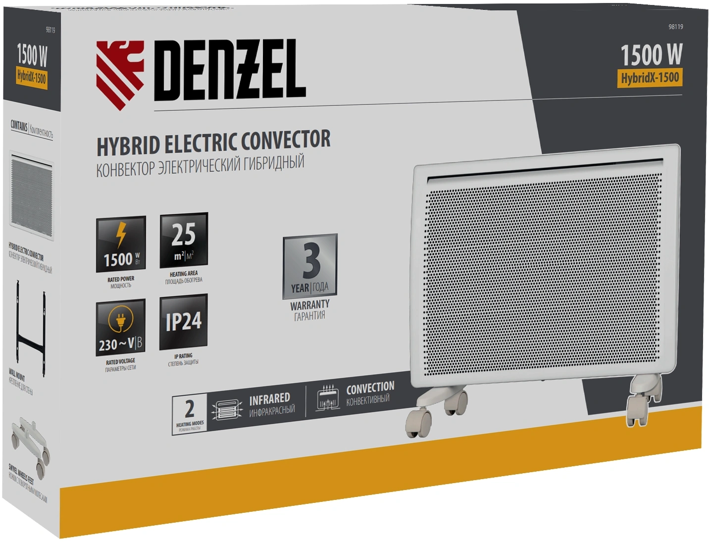 Два вида обогрева-конвективный и инфракрасный, цифровой термостат, дисплей, датчик определения открытого окна