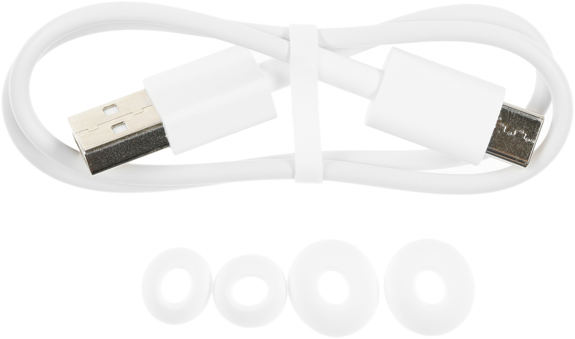 наушники с кейсом, зарядный кабель, инструкция, гарантийное уведомление, 3 пары амбушюр (1 из которых установлена)
