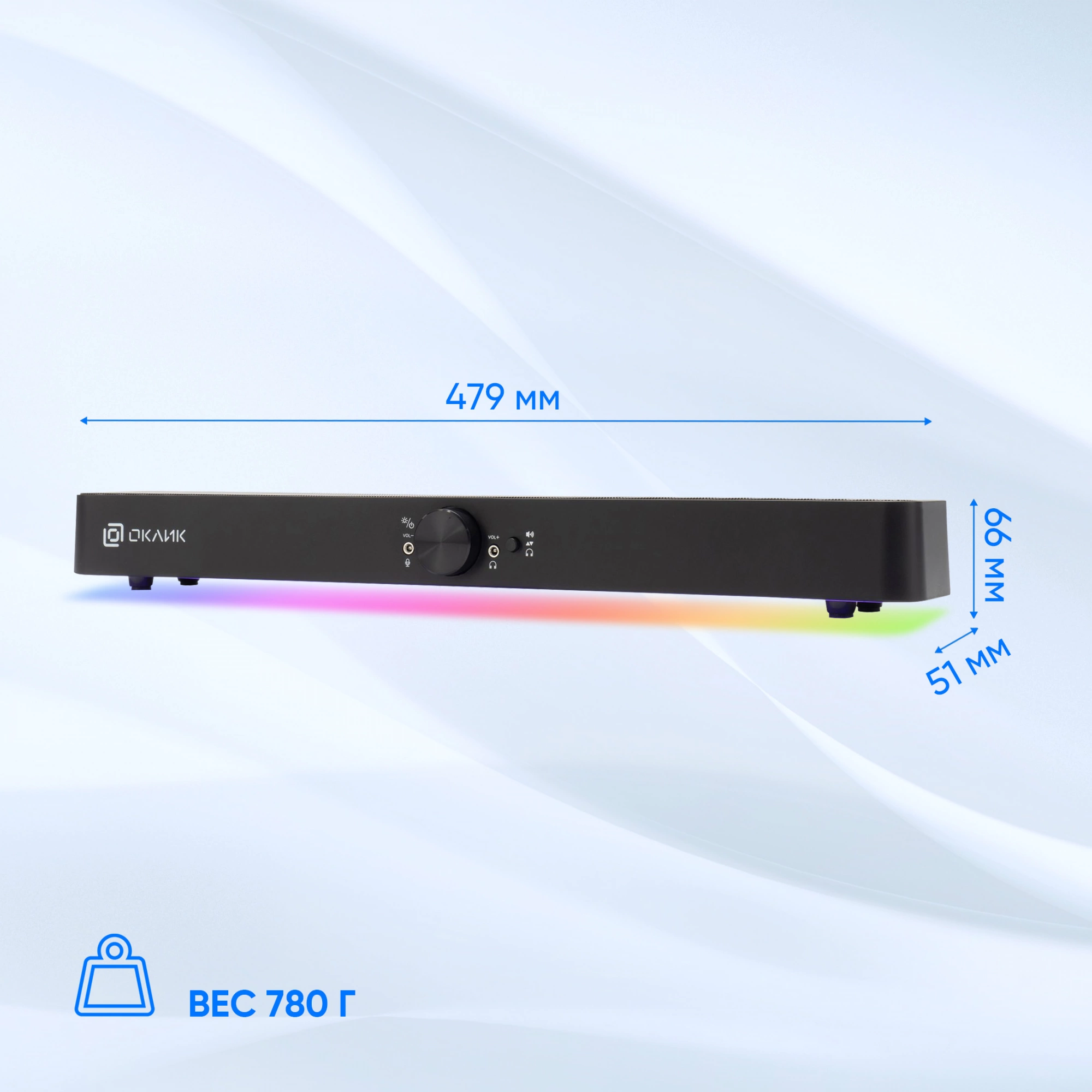 Многоцветная RGB-подсветка саундбара OK-534S добавляет визуальных красок к вашему прослушиванию. Более того, подсветка придаст вашему пространству уют и стиль.