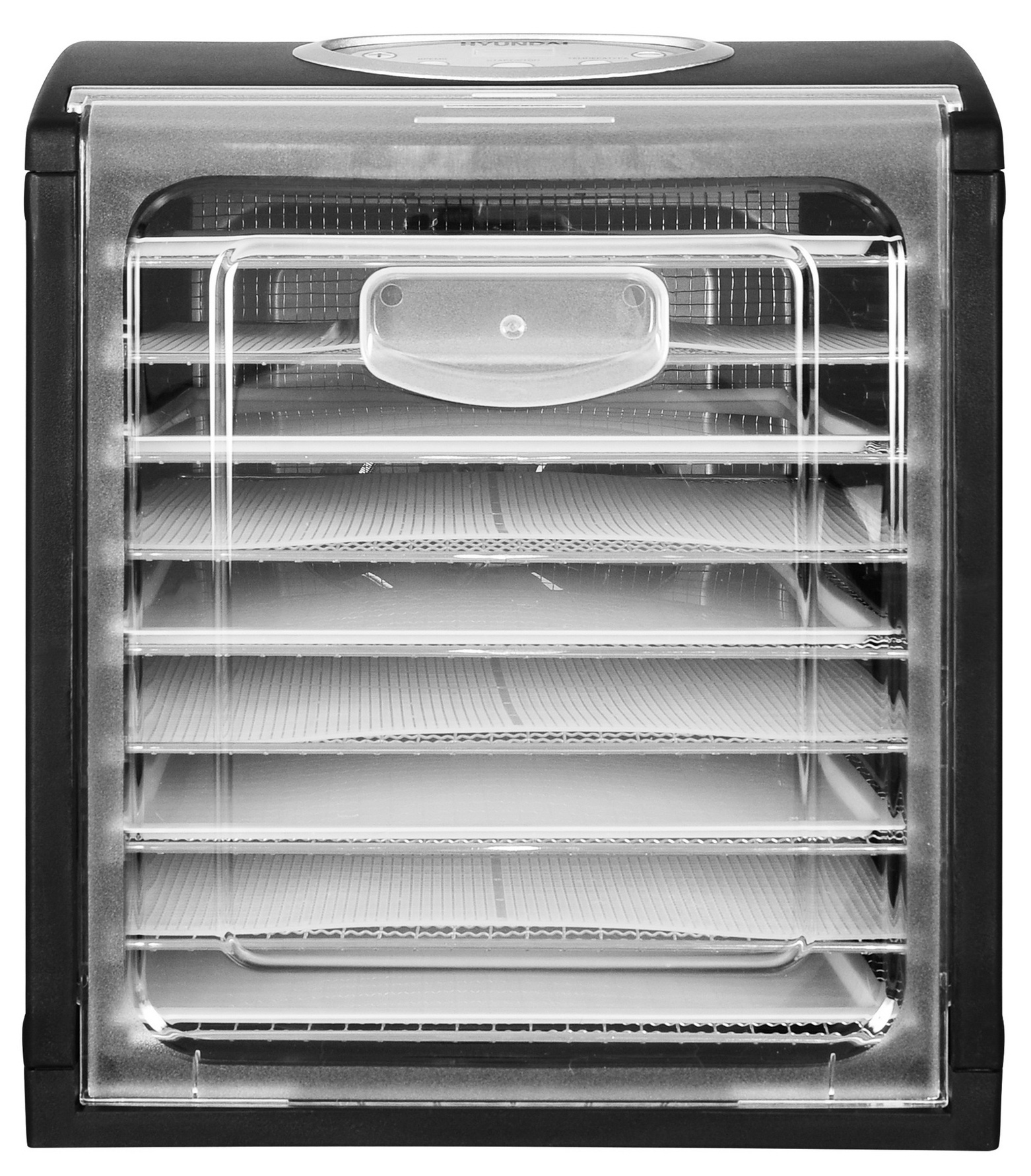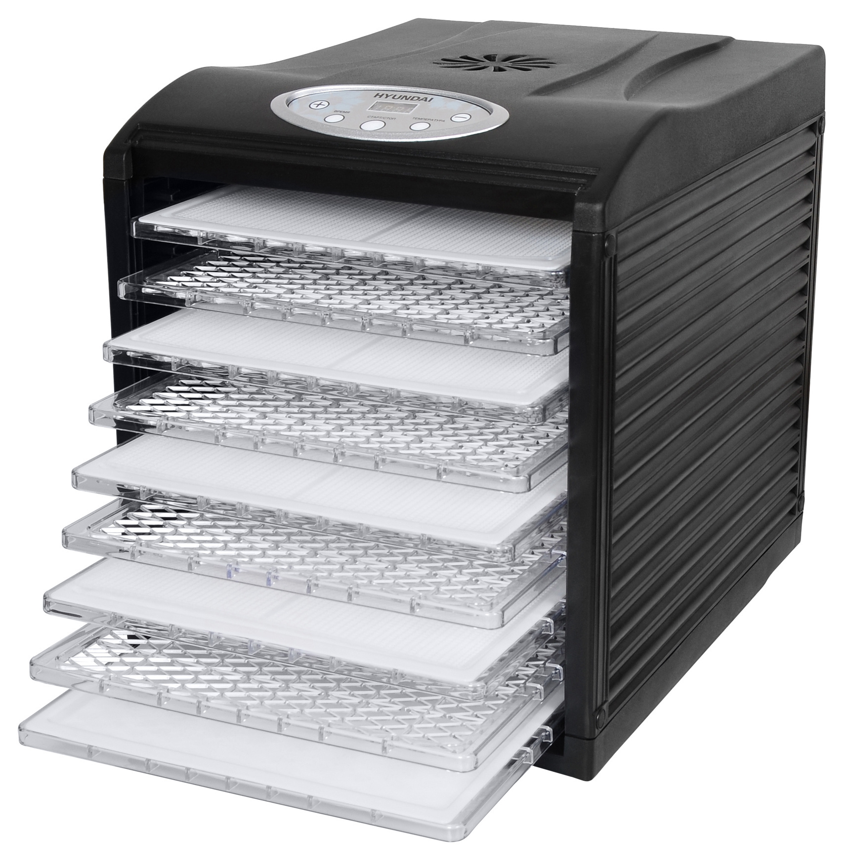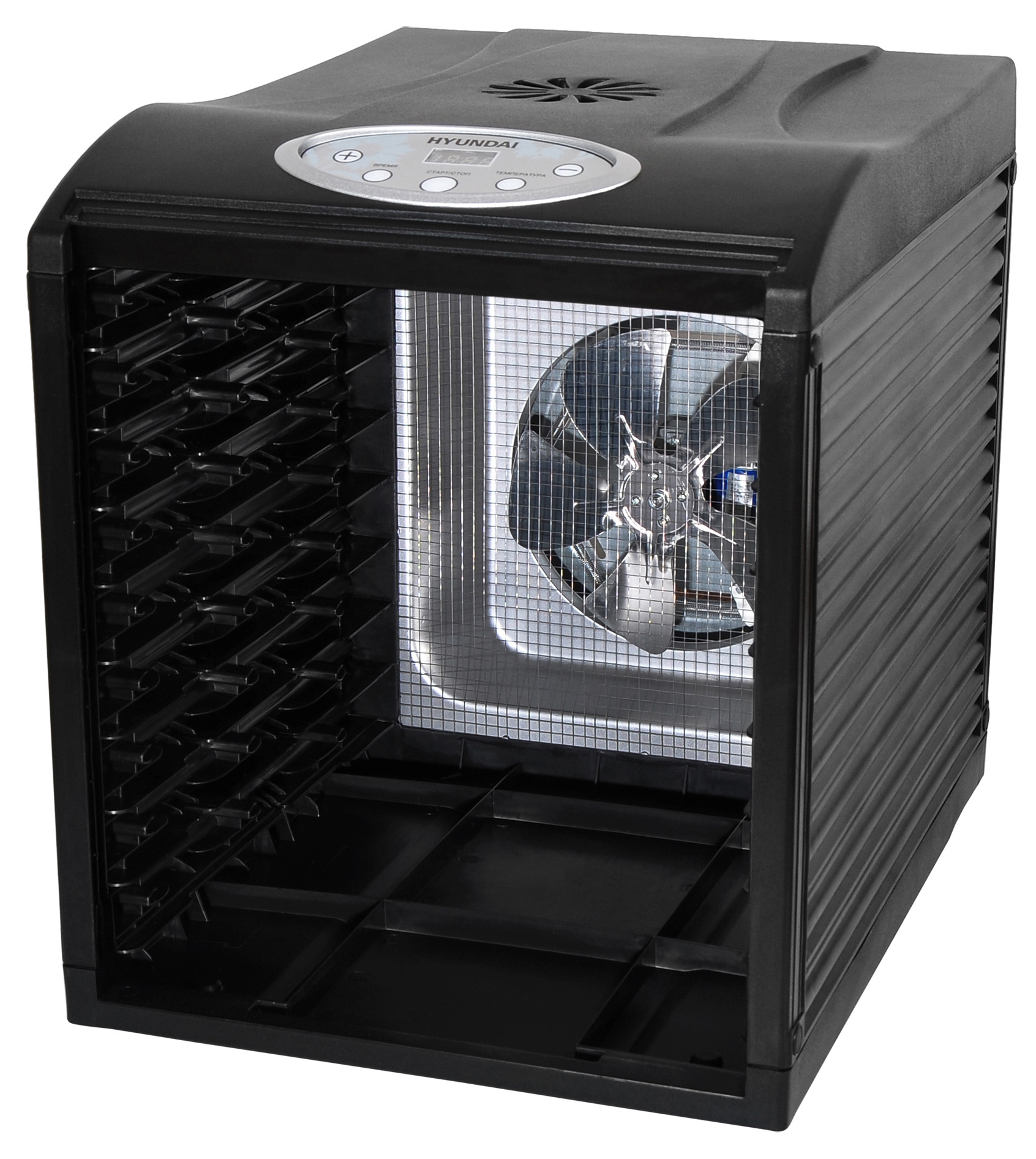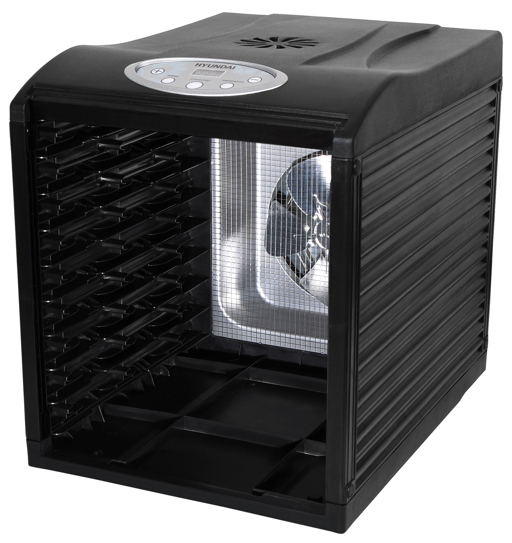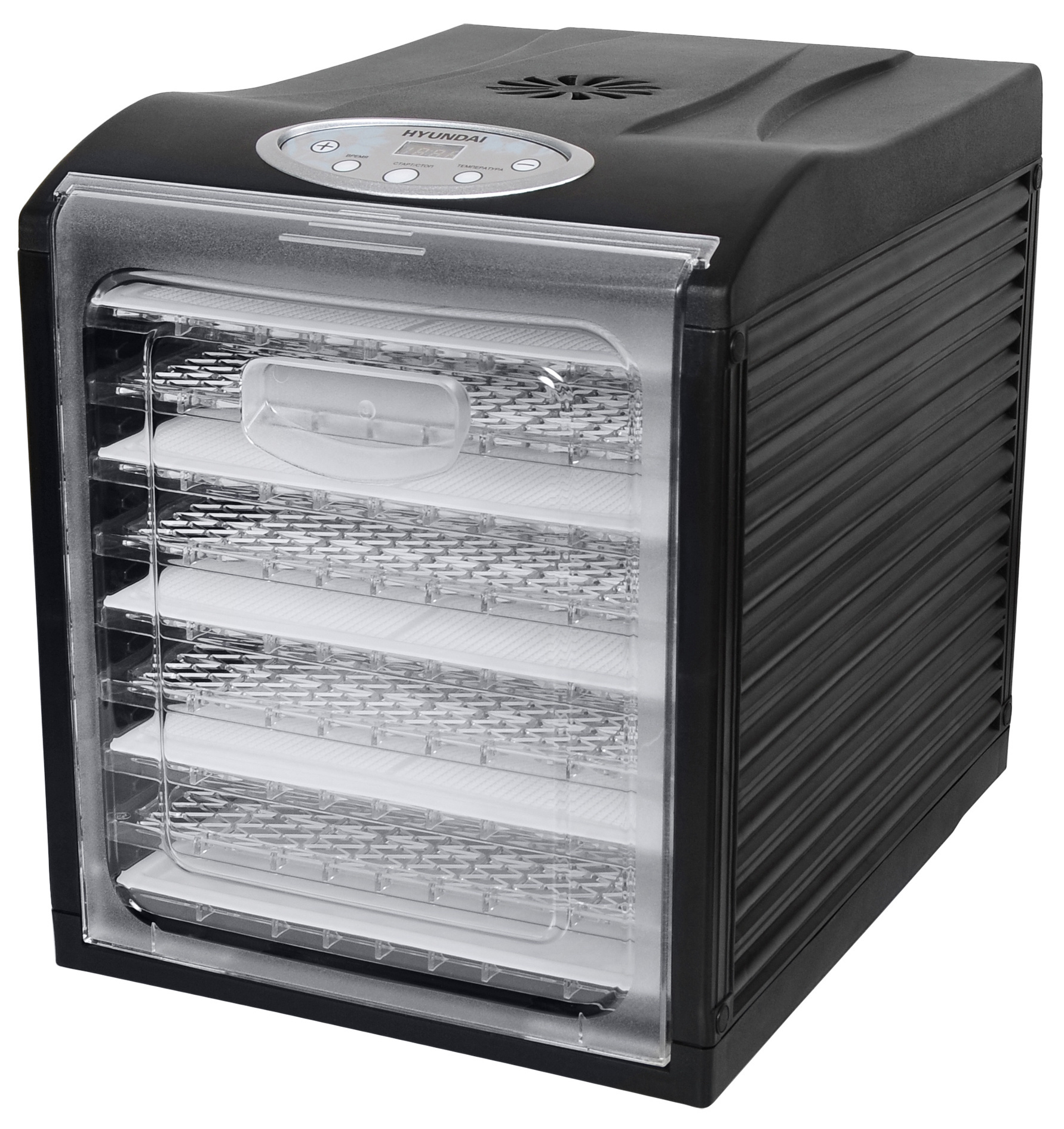 Устройство имеет солидную мощность – 700 Вт. Это позволит сушить за один раз сразу большое количество фруктов, овощей, грибов. Сушилка подойдет для тех, кто регулярно делает заготовки. Hyundai HYFD-1802 оснащена большой прозрачной дверцей, через которую удобно наблюдать за процессом приготовления полезных лакомств.