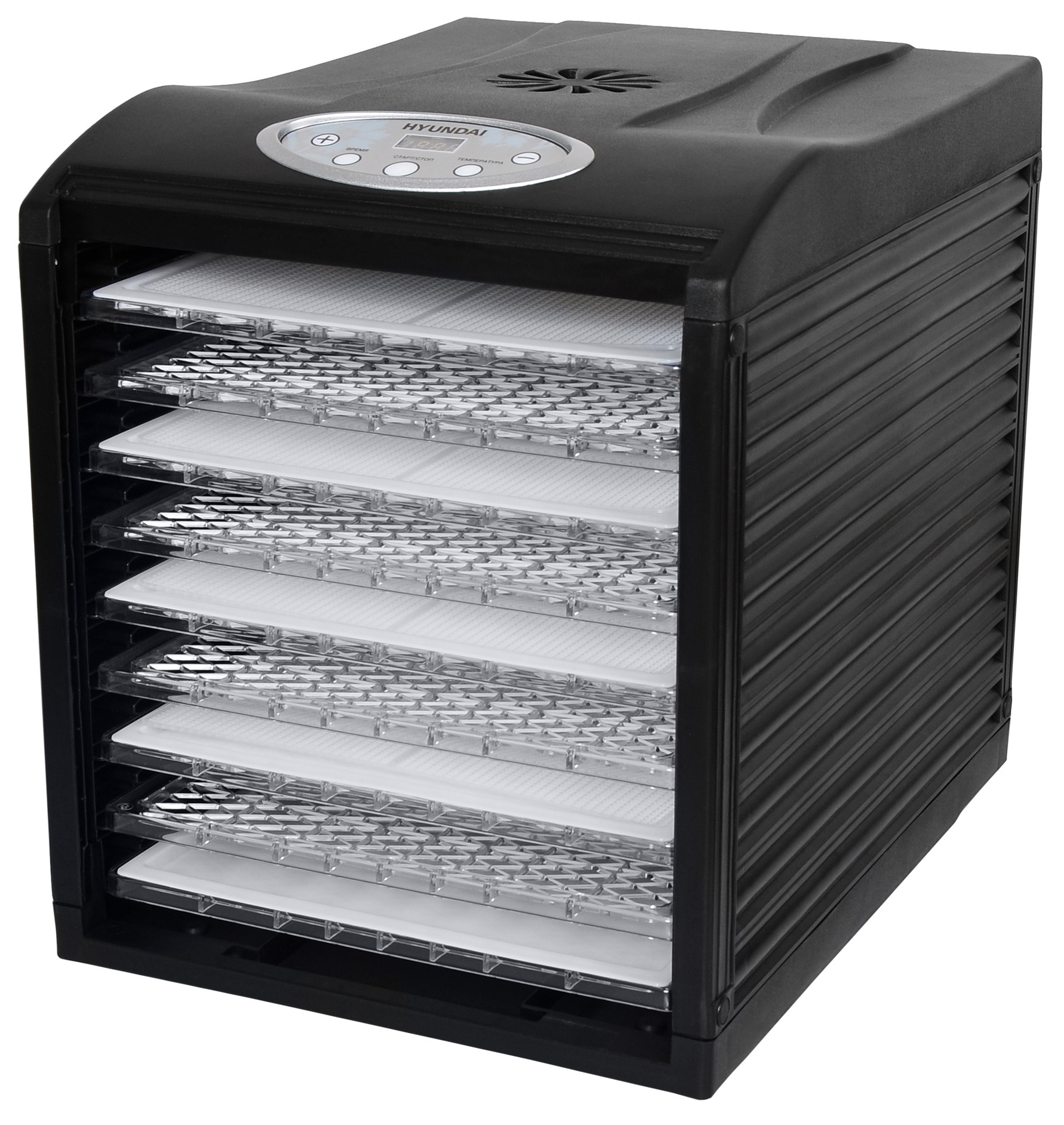 Вместительная сушилка для фруктов и овощей Hyundai HYFD-1802 – верный помощник в приготовлении вкусных и полезных домашних заготовок. В нее можно одновременно установить 9 поддонов. Одно из достоинств устройства – расширенная комплектация. Всего в комплекте с сушилкой идет 27 поддонов: 9 – стандартных сетчатых поддонов для сушки овощей и фруктов, 9 – для пастилы и 9 – для мелких продуктов типа зелени и специй. За один раз в сушилку можно загрузить до 2 кг.